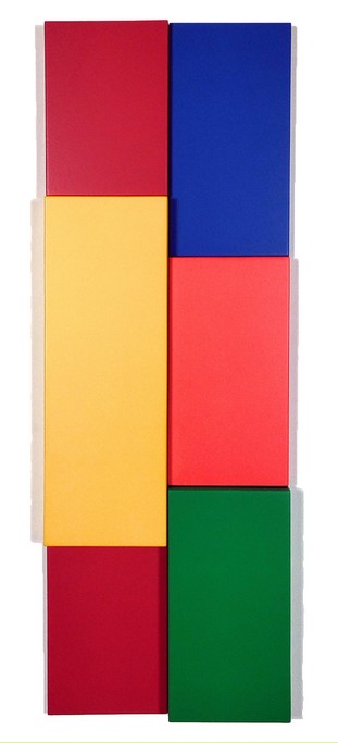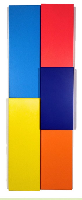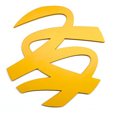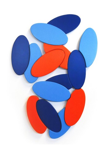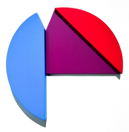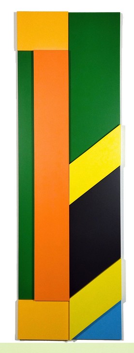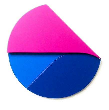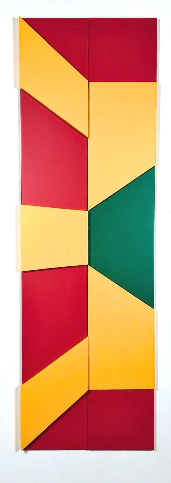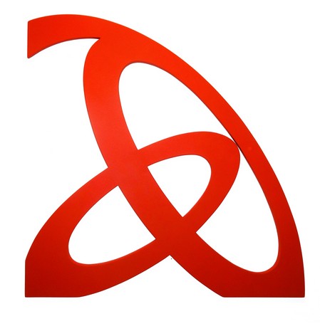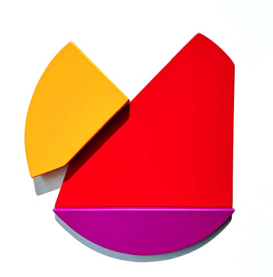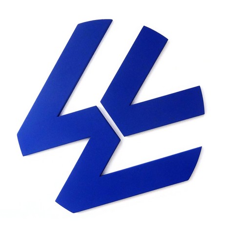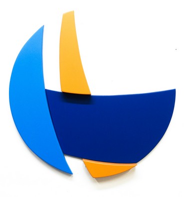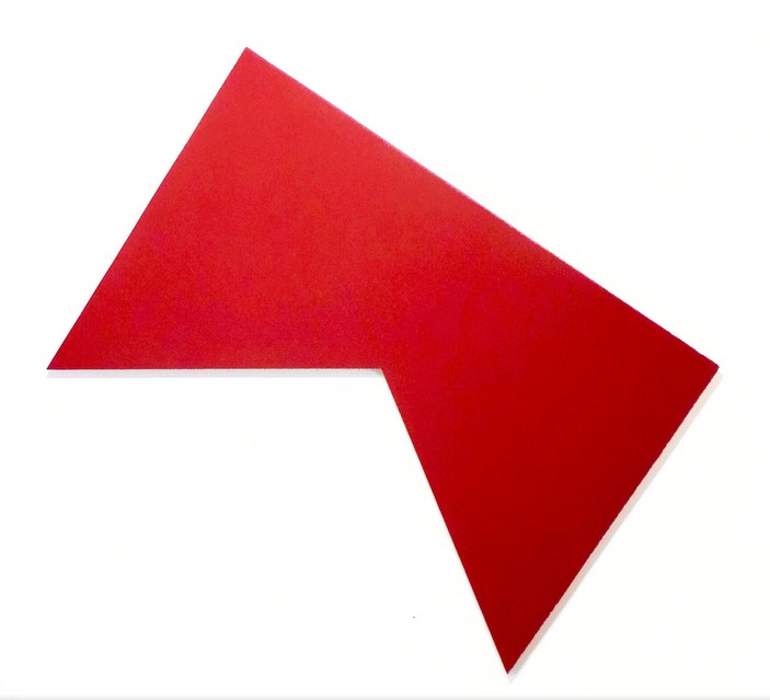 La démarche de Clément Santos, inspiré par l’abstraction géométrique et l’univers du graphisme, est celle d’un sémiologue. Il ne cesse de s’intéresser à la question du devenir de signes graphiques, logotypes, sigles, drapeaux, panneaux de signalisation routière, enseignes… quand on les a déconnectés de leurs signifiés. Ces objets, initialement conçus comme des signifiants, une fois déchargés de leur emploi fonctionnel, perdent leur rôle de signes et deviennent de simples matériaux qui peuvent se prêter à des opérations de fragmentation, découpage, pliage, collage, retournement, greffe… donnant naissance à de nouvelles entités plastiques autonomes, découpées dans des panneaux de médium puis peintes, dont le signifié est laissé à la libre interprétation du regardeur.