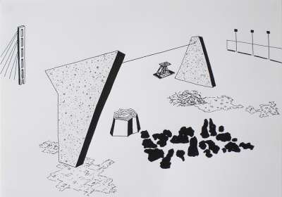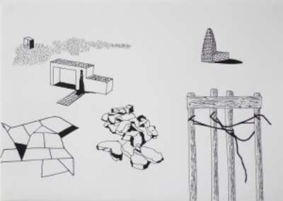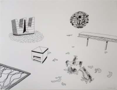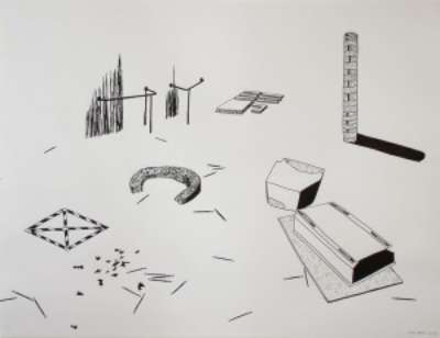 Les dessins d’Olivier Alibert racontent des histoires, mais leur détermination narrative se démultiplie en une multitude de branches et de détours qui dénient toute linéarité du propos et appellent à des lectures multiples. Si les objets figurés appartiennent souvent à un quotidien ancré dans une réalité banale, leur mise en espace les détourne de leur sens habituel et remet en cause leur destination habituelle, leur emploi. Leur assemblage sur la même feuille ignore les questions d’échelle et de proximité d’usage. On se trouve un peu dans la situation du déballage d’un panier de jouets d’enfants, dans lequel des éléments appartenant à différents jeux sont entassés pêle-mêle, sans souci d’échelle. Les enfants ne s’inquiètent guère de ces incohérences et peuvent construire de véritables univers ludiques sans s’occuper de l’incohérence de ces cohabitations : la girafe plus petite que la chaise, et le mouton aussi grand que le camion des pompiers…     Les feuilles d’Olivier Alibert tiennent donc du pêle-mêle[1], du clipboard des Anglo-Saxons. Les images y sont décontextualisées, traitées avec un souci de simplification qui les situe quelque part, dans un champ indécis, entre signe et image, entre graphisme et figuration, entre signifiant et signifié. Le recours aux seuls noir et blanc, les ambiguïtés voulues entre opacité et transparence contribuent à distancier les images de leurs modèles, à chambouler leur potentiel de signification, à les arracher à leur contexte quotidien.     La logique devient celle du rêve ou du jeu, des associations d’idées, de la rencontre fortuite à la Lautréamont[2] ou des cadavres exquis des surréalistes. Avec une différence de taille, cependant, les images, chez Alibert, ne se touchent pas. Elles se tiennent à distance les unes des autres, avec de grandes plages blanches qui les séparent et, pour seules relations physiques, de rares circuits aussi complexes et dérisoires que ceux qui relient les différentes parties du Grand verre[3] de Duchamp. C’est donc au spectateur, devenu acteur, de raccorder mentalement ces objets apparemment disparates et de construire sa propre histoire, l’artiste se dessaisissant très provisoirement du contrôle sur son œuvre. On pense encore à Duchamp dans un entretien avec James Johnson Sweeney, en 1956 : « […] j’y vois une intention curieuse dont je ne suis pas responsable, une intention readymade en quelque sorte, que je respecte et que j’aime. »[4]     Mais il ne faut pas se leurrer, l’abandon de contrôle par l’artiste n’est que partiel. Il ne donne au spectateur qu’une très relative liberté, une liberté surveillée. La pensée qui divague, le rêve qui extravague, ramènent toujours le regardeur au constat d’une faille : celle entre l’objet et sa représentation, entre sa valeur d’usage et son potentiel onirique, entre ses caractéristiques fonctionnelles et ses virtualités fantasmatiques, entre sa réalité physique et son idéalisation conceptuelle, entre son signe et son signifié, entre ancrage dans le quotidien et détournements possibles... Ce décalage permanent  ne serait-il pas une illustration de ce que le même Duchamp désignait sous le nom de retard : « […] un retard en verre, comme on dirait un poème en prose ou un crachoir en argent. »[5] ?     Cette faille matérialise aussi, de façon presque idéale, la triade de la sémiotique telle qu’elle a été codifiée par Charles Sanders Peirce : le représentamen, signe matériel, dénotant un objet de pensée grâce à un interprétant, représentation mentale de la relation entre le représentamen et l’objet. Le représentamen, pure possibilité de signifier, est premier ; l’objet, ce qui existe et dont on parle, second ; l’interprétant, qui dynamise la relation de signification, troisième. L’interprétant pouvant être de nouveau un signe susceptible d’être interprété dans une mise en abîme potentiellement infinie… Louis Doucet, février 2013