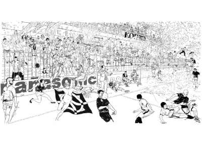 Dominique Bruneton est graphiste de formation. Les œuvres de cet artiste, peintre, graphiste et illustrateur, passionné d’images tirées du quotidien, peuvent nous transporter dans des univers urbains ou en Afrique, figurer des foules ou des portraits solitaires.