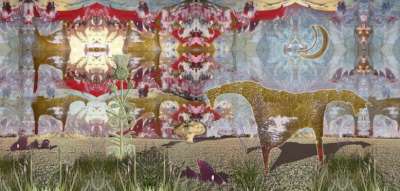 Peintre décorateur de formation, Jean-Jacques Apertet produit, depuis 2007, des images numériques de grandes dimensions. Ses tableaux sont, pour lui " des moyens d’appréhension du monde " et des " chemins de méditation. " Attaché à une forme de figuration, il ne s’en considère pas l’esclave et cherche à transcrire les profondeurs, la circulation de la lumière et l’expression du vivant, mettant en avant l’essence des images plutôt que la perfection de leur représentation.Ses sources d’inspiration sont à rechercher du côté de Max Ernst, pour la pratique de la plongée dans l’imaginaire, et de Picasso, pour un appétit de vivre ludique qui prime sur le léché du rendu. On peut aussi y trouver des influences de la philosophie bouddhiste et des références à la cosmogonie des peuples premiers.