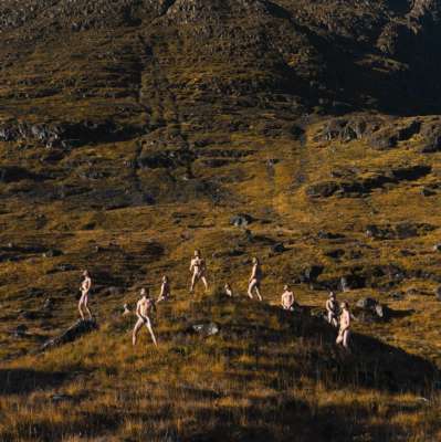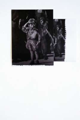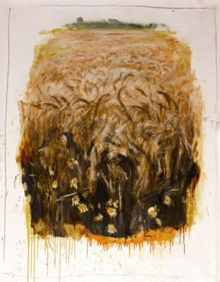 Dans d’amples et majestueuses vues panoramiques, Gaspard Noël multiplie les apparitions d’un même motif, petit, peu visible en première lecture, incongru, insolite, décalé, mais décliné, conjugué et varié. Ces personnages deviennent sujets, subissant plus le paysage qu’ils ne l’habitent. Ce sont des cercueils investissant une forêt du sol au sommet des frondaisons, des loups-garous, quadrupèdes humains nus, traquant leurs proies dans un bois enneigé, des gerbes d’eau accompagnant la chute d’improbables météorites vivants dans un lac écossais… Le tout dans la placide impartialité d’un paysage grandiose. On pense inévitablement à la noyade du héros, dans l’indifférence générale, telle qu’elle est représentée par Pieter Bruegel l’Ancien dans La Chute d’Icare. |  |  | Corine Pagny – née en 1959 – travaille dans les Yvelines