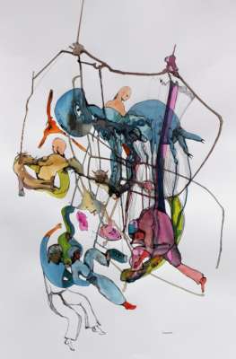 Nadine Touzé sculpte et assemble. Ses œuvres sont joviales, colorées, invasives, proliférantes, déjantées, évoquant le monde d’une enfance moins innocente qu’on pourrait le penser au premier abord.
