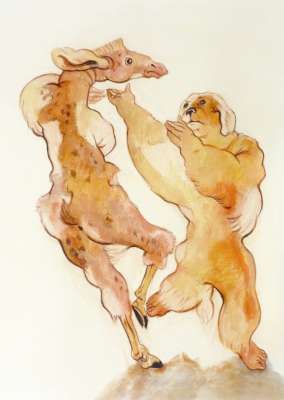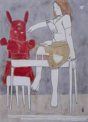 Le pseudonyme Mégalo Raëpsaët dissimule une artiste marseillaise qui fait feu de tout bois pour dénoncer la banalisation de la violence et les travers de notre société. Ses animaux hybrides, humanisés – un lapin, notamment –, ingénus de prime abord, sont armés jusqu’aux dents. Ils manipulent des seringues, des pulvérisateurs d’insecticide, des armes automatiques… Ils sont parfois cagoulés, toujours terrifiants, tout en étant ancrés dans l’idée que l’adulte se fait de l’univers de l’enfance, de ses bonheurs et de ses angoisses.
