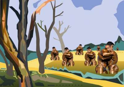 Paradoxalement, ces corps sans identité précise se muent en champs de pure expression, dépassant largement leurs limites. La tension suggère une violence latente, prête à exploser, mais sans volonté destructrice. Il s’agit, en quelque sorte, de la matérialisation de la part d’inhumanité qui réside en chaque être et qui cherche à se dissoudre dans les couleurs chaudes de son environnement. Une sorte de rébellion intérieure matérialisée par la seule posture du corps, mais sans personnalisation ni psychologisation. Une métaphore de notre humanité.