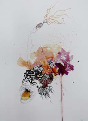 Perrine Serre  est encore étudiante aux Beaux-Arts de Lyon.Elle pratique le monotype qu’elle réalise avec de l’encre typographique et rehausse au crayon, produisant des tirages uniques avec de remarquables effets de transparence. Leur texture est onctueuse, les formes amples, à la charnière entre figuration et abstraction.