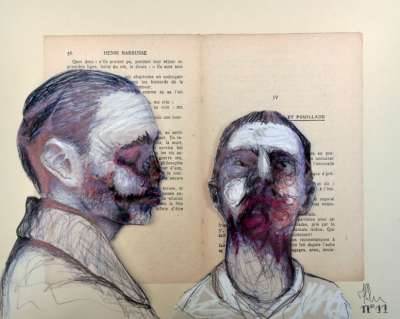 Venu de la gravure et de la sculpture, passé par la peinture et le dessin, Hervé Bourdin développe, depuis quelques années, une technique qui mêle infographie, impression numérique et peinture acrylique.Il nous livre des sortes de saynètes dans lesquelles des individus débonnaires et sympathiques, qui pourraient être nos voisins de palier ou des collègues de travail, se livrent à des activités qui mêlent, dans la même page, le grotesque et le tragique. Le regard jeté sur la société est acide, décapant, mais aussi rempli d’une profonde empathie pour les personnages mis en scène.