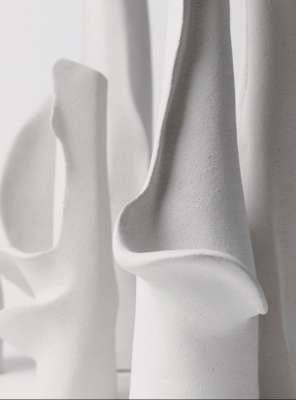 Kathy Le Vavasseur a plusieurs cordes à son arc, mais c’est dans ses céramiques qu’elle donne le meilleur de sa créativité et de son sens plastique inné.Fascinée par les formes simples, par les arcs brisés, les nœuds, les plis et les drapés, elle produit des pièces de petites dimensions, qui constituent des variations – au sens musical de ce terme – quasi infinies sur un module initial dont elle n’arrive pas à épuiser la richesse. Les couleurs sont sobres – du blanc et du bleu ciel –, la puissance évocatrice ne prenant sa source que de la forme.  Présentées alignées ces pièces constituent de stupéfiantes installations qui séduisent et déroutent. Elles évoquent les signes d’une langue imaginaire que le spectateur est invité à décrypter.