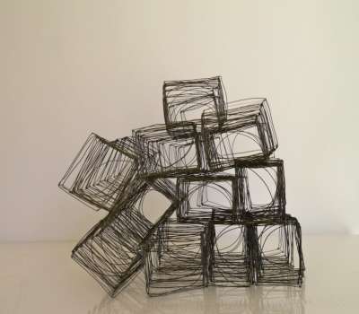 Myrian Louvel-Paoli a été très vite séduite par le caractère graphique des anciens objets en fil de fer. Depuis 1995, elle expérimente avec les matériaux les plus divers, au premier rang desquels les fils de toutes natures : fer et autres métaux, aiguilles de pin, fibres végétales…Elle forme, tord, coude et emmêle ses fils pour créer des volumes fantomatiques, dont les ombres portées dessinent de délicats réseaux, parties intégrantes de l’œuvre. La ligne du fil sculpte et structure donc le vide sans le combler, mais engendre aussi des œuvres bidimensionnelles éphémères et changeantes.