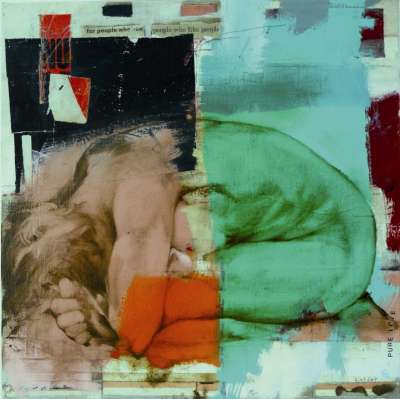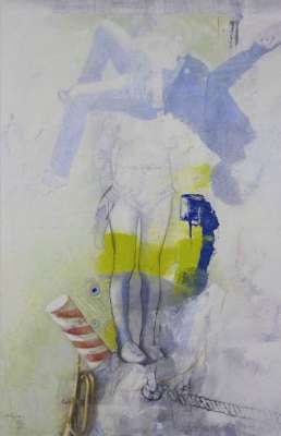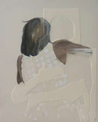 La peinture de Nathalie Sizaret est figurative et onirique. Elle célèbre la verticalité, avec des corps légers, simultanément forts et fragiles. Elle est empreinte d’un bonheur de vivre et d’un optimisme lumineux irrépressibles.Nathalie Sizaret structure ses toiles par ce qu’elle nomme des passages, séquences verticales sur lesquels s’impriment, en état de lévitation, des visages, des corps, des ailes, traces d’une présence. Des mots, sur des papiers collés, accompagnent ou contrecarrent le mouvement ascensionnel et relancent le regard. Ces textes, qui s’insèrent dans les chairs, sont des rappels de la réalité quotidienne, avec ses joies et ses peines, ses conflits et ses apaisements, mais jouent aussi le rôle de métaphores de la mémoire, du souvenir.