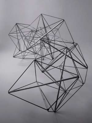 Guillaume Chaussé crée des structures autoporteuses filaires en s’appuyant sur le concept de tenségrité, inventé par l’architecte Buckminster Fuller.  La tenségrité caractérise la faculté d’une structure à se stabiliser par le jeu des forces de tension et de compression qui s’y répartissent et s’y équilibrent. Les structures établies par la tenségrité sont donc stabilisées, non par la résistance de chacun de leurs constituants mais par la répartition et l’équilibre des contraintes mécaniques dans la totalité de la structure. Ainsi, en reliant des barres par des câbles, sans relier directement les barres entre elles, on arrive à constituer un système rigide stable. |  |  | Olivier Poizac – né en 1967 – travaille à Versailles