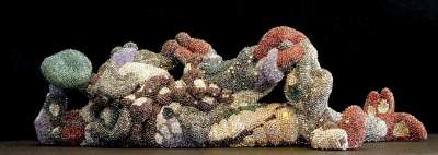 Thoji Choi se définit comme un créateur de sculptures oniriques et gourmandes. Ses œuvres sont des structures molles, en toile, solidifiées par des armures réalisées par la juxtaposition d’une multitude de zircons, ces diamants du pauvre, utilisés pour réaliser des bijoux à bon marché. Leurs formes peuvent être humaines, des fragments de corps, des animaux, des végétaux, des objets utilitaires ou des créatures fantastiques.