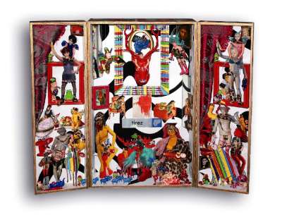Ses triptyques rappellent les retables baroques. Ils ne sont pas peuplés de saints ni de scènes édifiantes, mais de figures bigarrées, mêlant, dans un raccourci saisissant, plusieurs siècles d’histoire de l’art, depuis la statuaire grecque et la peinture de la Renaissance italienne jusqu’aux boîtes de merde d’artiste de Manzoni et des jouets en matière plastique. Le résultat est décapant, corrosif et hilarant.
