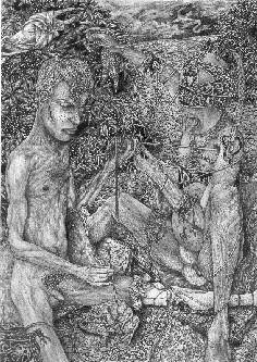 Les dessins et les poèmes de Gaspard Pitiot, jeune artiste aux dispositions polymorphes, né en 1978, font souvent référence au verre transparent, au cristal divinatoire, au miroir reflétant. C’est à travers ces prismes, tour à tour déformants ou réfléchissants, qu’il se livre à une analyse sans pitié de notre société. Son geste, plastique ou littéraire, tient du scalpel, non pas de celui du chirurgien mais de celui de l’opérateur d’un amphithéâtre de dissection élargi aux dimensions de l’univers, de l’humanité. Sa vision du corps humain – et du corps social – est simultanément douloureuse et cruelle, attendrie et nostalgique, sordide et futile… Ses dessins nous proposent des constats au réalisme sans appel, à l’objectivité presque clinique, mais quelque peu distanciés, comme observés à travers un miroir, même si celui-ci a parfois perdu ses propriétés réverbérantes, à l’instar du propos de Xavier Forneret : « L’avenir est un miroir sans glace. »[2]     Si la vision du monde que nous offre Gaspard Pitiot, depuis l’autre côté du miroir est désabusée et pleine de désillusions – on pense à la définition donnée par Ambrose Bierce : « Miroir. Surface vitreuse sur laquelle est reflétée une image fugitive pour la grande désillusion de l’homme. »[3] –, elle n’en est pas pour autant désespérante ni désespérée. Le pays dans lequel Gaspard Pitiot nous accompagne n’est pas celui d’Alice mais celui des hallucinations familières, de la folie banalisée, des marginaux, des laissés pour compte, de ces beautés imperceptibles à l’œil nu, qui récusent les canons tyranniques de la bienséance, du savoir-vivre et du prêt-à-penser.     Les images que Gaspard Pitiot nous livre incitent le spectateur à formuler la question interdite, quasiment indécente, de la raison de ces blessures béantes, de ces flétrissures infamantes, de ces difformités obscènes, de ces accidents mutilants. Force est de constater que les causes n’en sont pas nécessairement mécaniques. Elles sont à rechercher dans le corps social, dans la dictature d’une normalité arbitrairement décrétée, dans la prévalence d’un narcissisme quelque peu voyeuriste, dans ce mimétisme social qui stigmatise toute velléité d’originalité ou d’individualisation. Même si le sado-masochisme est souvent latent dans ses dessins, Gaspard Pitiot ne s’y complaît guère. On décèle toujours dans son propos, aussi cruel soit-il, une grande sympathie pour ses sujets, pour l’espèce humaine. Le miroir ne serait-il pas, après tout, véritablement réfléchissant et placé face au regardeur, mettant en évidence ses propres plaies physiques et mentales ? Un instrument figeant, telle une plaque photosensible, l’errance psychique du regardeur ?     Le fait que Gaspard Pitiot produise aussi des bandes dessinées corrobore cette analyse. Il y a toujours, même dans ses dessins isolés, une case virtuelle prégnante, porteuse d’une dynamique sous-jacente qui appelle un avant et un après, dans un propos narratif qui récuse l’idée d’une stabilité définitive. De ce point de vue, il se situe à l’opposé de Cocteau – « Les miroirs sont les portes par lesquelles la Mort va et vient. »[4] – en appelant l’observateur à créer mentalement le mouvement, l’histoire passée et le devenir des scènes qui lui sont exposées. Si la Mort peut effectivement aller et venir, la Vie semble lui damer le pion à coup sûr…      Peu importe, finalement, de savoir si ces images, échappées d’une pellicule cinématographique virtuelle, sont positives ou négatives. Chez notre artiste, les valeurs ne sont pas inversées. Elles sont juste réactualisées, confrontées à une réalité rendue tangible qui décape les préjugés, les habitudes, les conventions sociales, et nous pousse à les frotter à notre propre expérience. Il y a, dans la démarche de Gaspard Pitiot, un peu de ce que les mathématiciens désignent sous le terme de test aux limites, aux marges. Une bonne façon de s’assurer que les hypothèses tiennent…     Les poèmes de Gaspard Pitiot sont, sur le plan formel, aux antipodes de ses dessins. Ils adoptent les règles rigoureuses d’une prosodie d’un autre temps, au service d’un langage harmonieux et hypnotique. La rime y est recherchée, le rythme méthodiquement cultivé, non sans certains accès d’une préciosité quelque peu surannée. Nous sommes ici à contre-courant des pratiques contemporaines mais ce n’est qu’un artifice pour mieux piéger le lecteur. Dans ses vers, pragmatisme critique et lyrisme s’entrechoquent dans une écriture qui déstabilise le lecteur et le place dans une situation de porte-à-faux proche du déséquilibre.     Les thèmes abordés sont les mêmes que dans ses dessins, avec des corps déformés, tressés, étirés, sous contrainte :