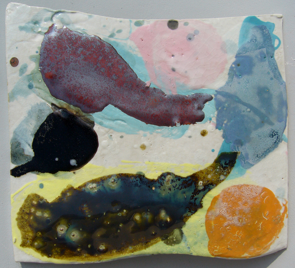 Les premiers travaux en céramique de Patrick Crulis prolongeaient ses activités de peinture, puisqu’il s’agissait de plaques avec de l’engobe et des émaux, cuites comme du grès. Son processus de création était de même nature que celui du peintre. Des études préparatoires dessinées précédaient la réalisation. La plaque de terre, façonnée en caisson, jouait le rôle de la toile sur châssis. Il recourait donc à des ficelles de peintre mais la cuisson amenait son lot de surprises. Il les acceptait et les cultivait même, déclarant : « Ça se déforme à la cuisson. Il arrive que ça se casse en deux, mais ce n’est pas grave. L’accident est important. Il devient l’expression, et, depuis toujours, c’est ce qui m’intéresse. Sur les plaques, on peut empâter. Certaines ont même beaucoup de matière ; en fait, j’utilise des trucs de peinture. Par exemple, je laisse les bords respirer. Nicolas de Staël le faisait sur ses toiles. Mais je n’ai pas vraiment de règle. »[5] Dans ces pièces, se situant entre figuration et abstraction, tel un peintre, Patrick Crulis recherchait le contraste des matières, les glacis, les transparences et les opacités, les oppositions de couleurs vives contrastant avec des noirs intenses. Nous étions ici proches des univers de Jorn, Corneille ou Appel… Au sujet de son travail d’alors, l’artiste déclare : « Par la polychromie, par la vigueur de contrastes entre tendresse ou dureté, par l’étrangeté des formes ou des tracés […], mes plaques, offrent un travail de plus en plus proche de la peinture expressionniste que j’avais abandonnée à mon arrivée en province. »[6]