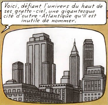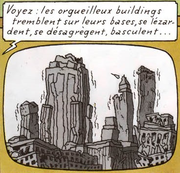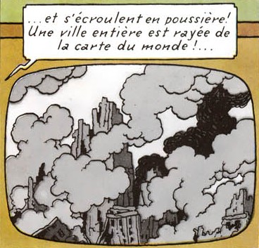 Dans cette œuvre, un parallèle s’impose avec les utopies urbaines du Congolais Bodys Isek Kingelez (1948-2015), découvertes lors de l’exposition Les magiciens de la terre, en 1989, au Centre Pompidou, puis au MoMA de New York, dans son exposition rétrospective posthume City Dreams, en 2018. Dans les deux cas, l’atmosphère d’une métropole improbable est créée avec des matériaux de récupération, dans un esprit baroque luxuriant chez l’aîné et minimaliste, presque cistercien, chez la cadette. L’instabilité et la fragilité de l’installation me font aussi penser à la maquette de la ville désagrégée par les ultra-sons de l’invention du professeur Tournesol en page 51 de l’album L’Affaire Tournesol de Hergé.