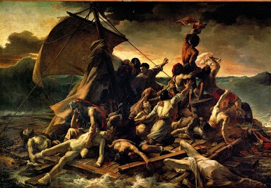 Quand on se penche sur les productions plastiques qui traduisent l’enfermement, la réclusion, le confinement, les exemples sont nombreux et pourraient faire l’objet d’un épais volume. Je pense, par exemple, à l’effrayant huis-clos en pleine mer qu’est Le radeau de La Méduse, 1818-1819, de Géricault, dont j’écrivais, en 2012 : « Le vaisseau salvateur est devenu un point indiscernable à l’horizon. Les voiles du radeau le conduisent dans la direction opposée. Image de la contrariété ? Préfiguration d’un enfer, gouffre d’horreur où la volonté de l’homme est asservie aux éléments hostiles ? »[10] Pour ma part, je n’ai retenu, ici, que quelques œuvres, dans une démarche nécessairement subjective, mais qui sont les premières à m’être spontanément venues à l’esprit. Elles ne sont pas nécessairement en plein dans le sujet, mais, résultant d’une pensée rhizomique[11] que j’affectionne, se sont immédiatement imposées à moi.