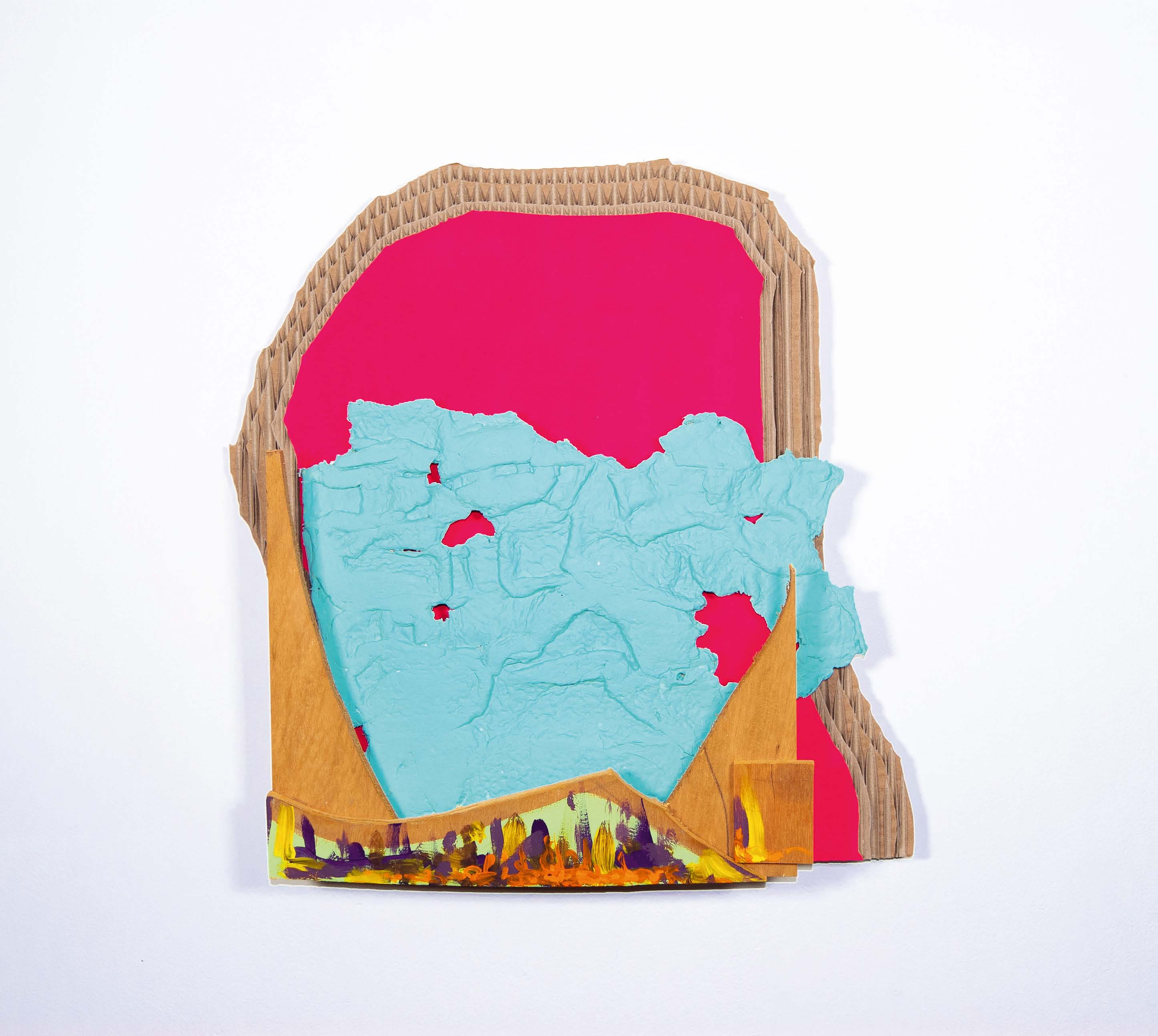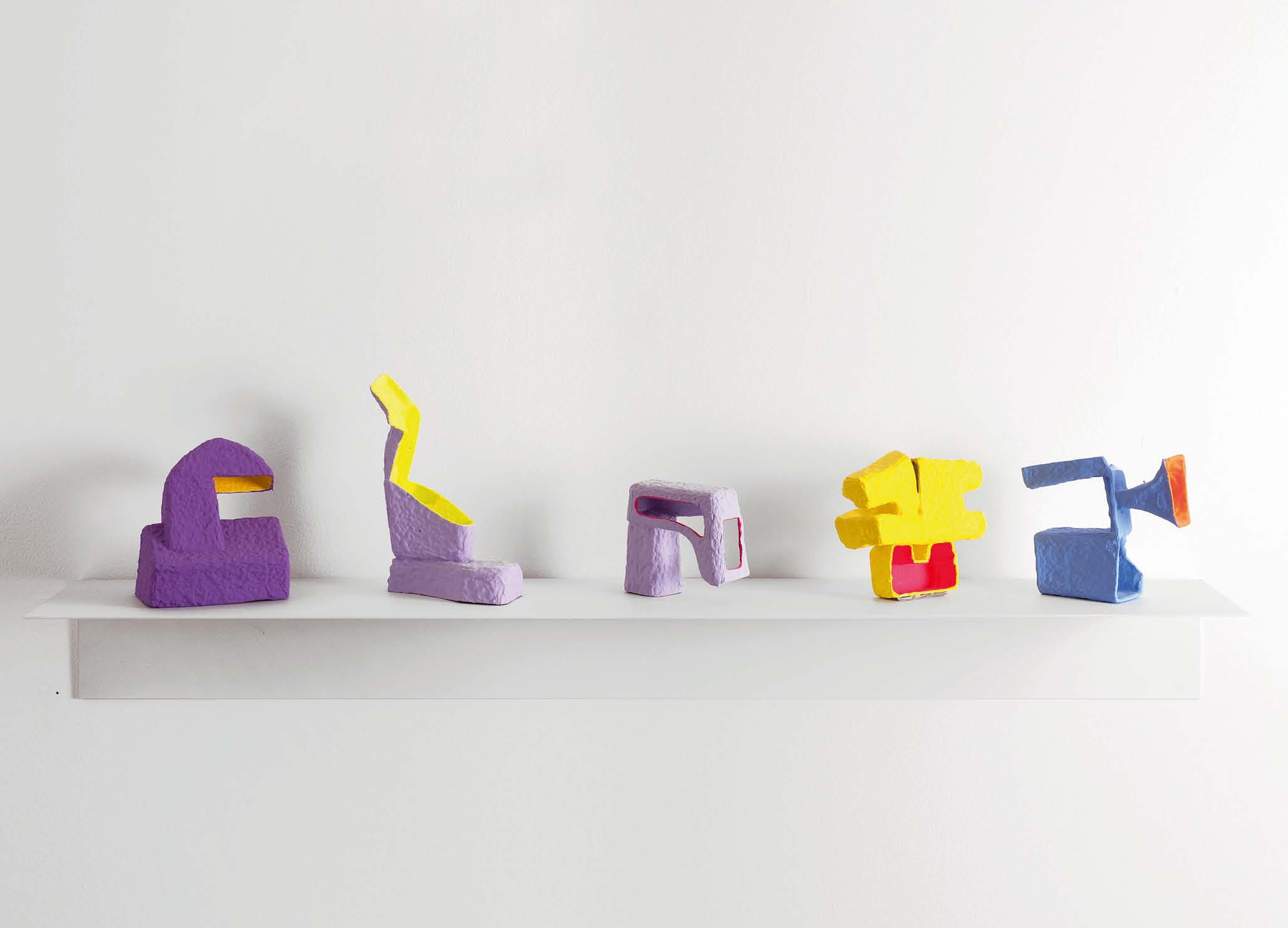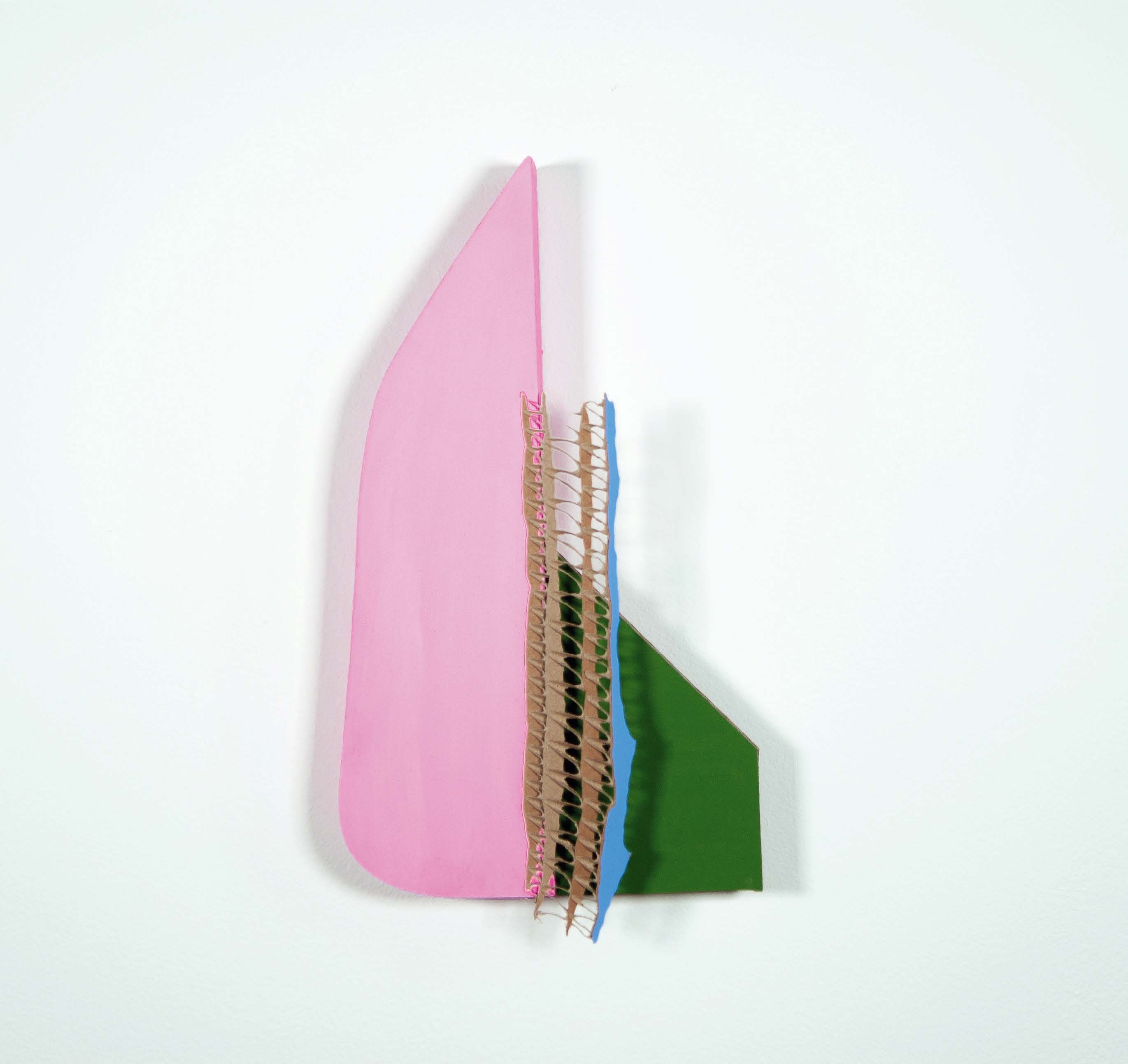 La forme est donc ici première. Pierre Corthay en dit : « Elle devient signe, fragment de… »[5] Plus encore, elle vise à donner une présence tactile à des considérations essentiellement visuelles. Les couleurs, chaleureuses, gourmandes comme celles de confiseries, contribuent, non sans malice, à brouiller encore un peu plus les pistes et à mener le spectateur là où il n’irait pas de lui-même. Pierre Corthay évoque même de potentielles synesthésies : « Puis la couleur, peut être un son. Elle cherche les coins, les recoins, se pose avec attention et douceur sans crier et devient la voix de sa forme. »[6] Son ami Pierre Mabille souligne son caractère volontairement agressif : « Elle est offensive face aux volumes et aux surfaces, s’envole vers des gammes souvent saturées, fluo, il arrive qu’une couleur artificielle recouvre le matériau jusqu’à un effet de dématérialisation. Parfois elle s’associe avec la non-couleur des matériaux bruts, bois ou carton, qui se révèle dans une configuration modifiée. »[7]