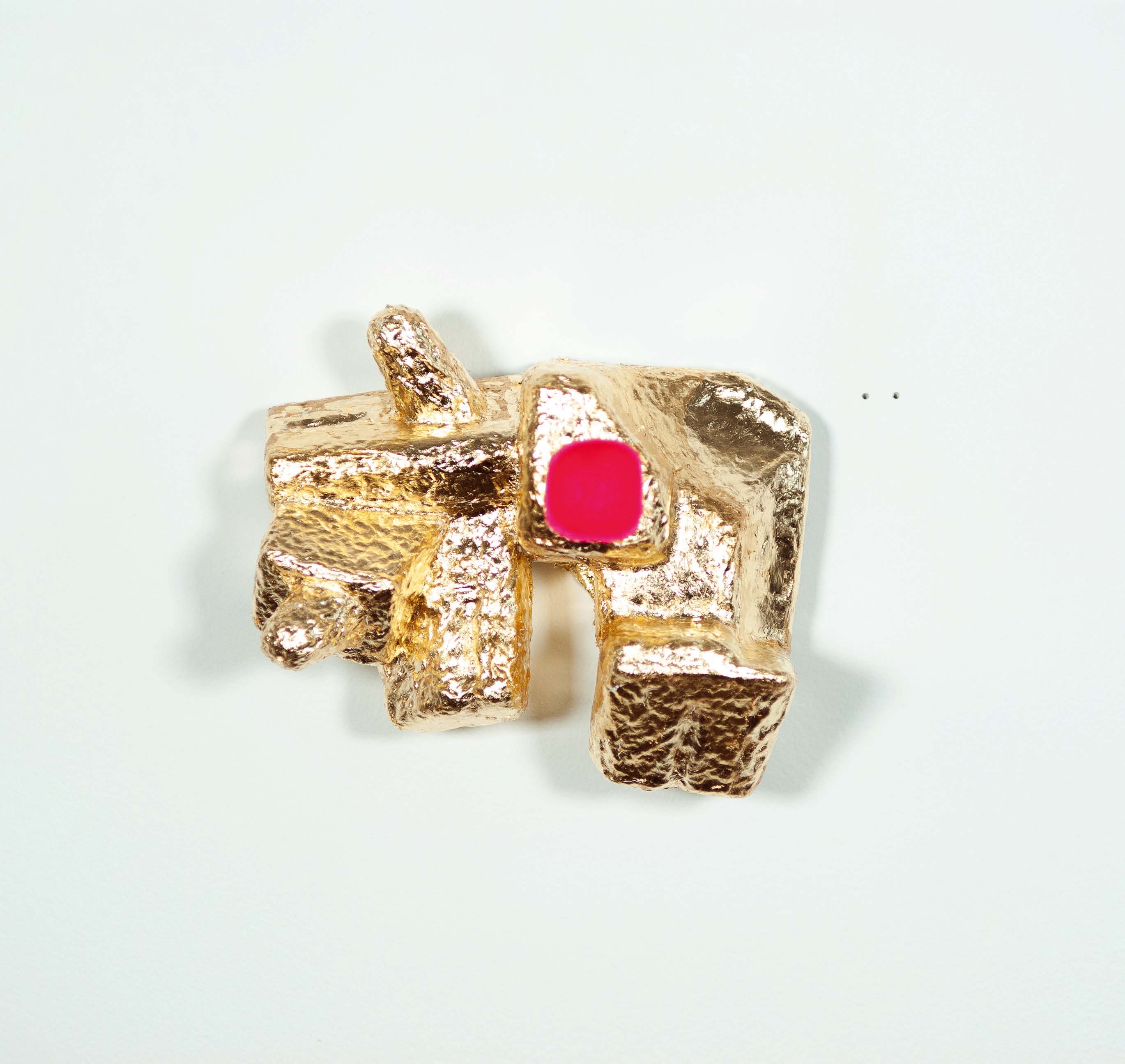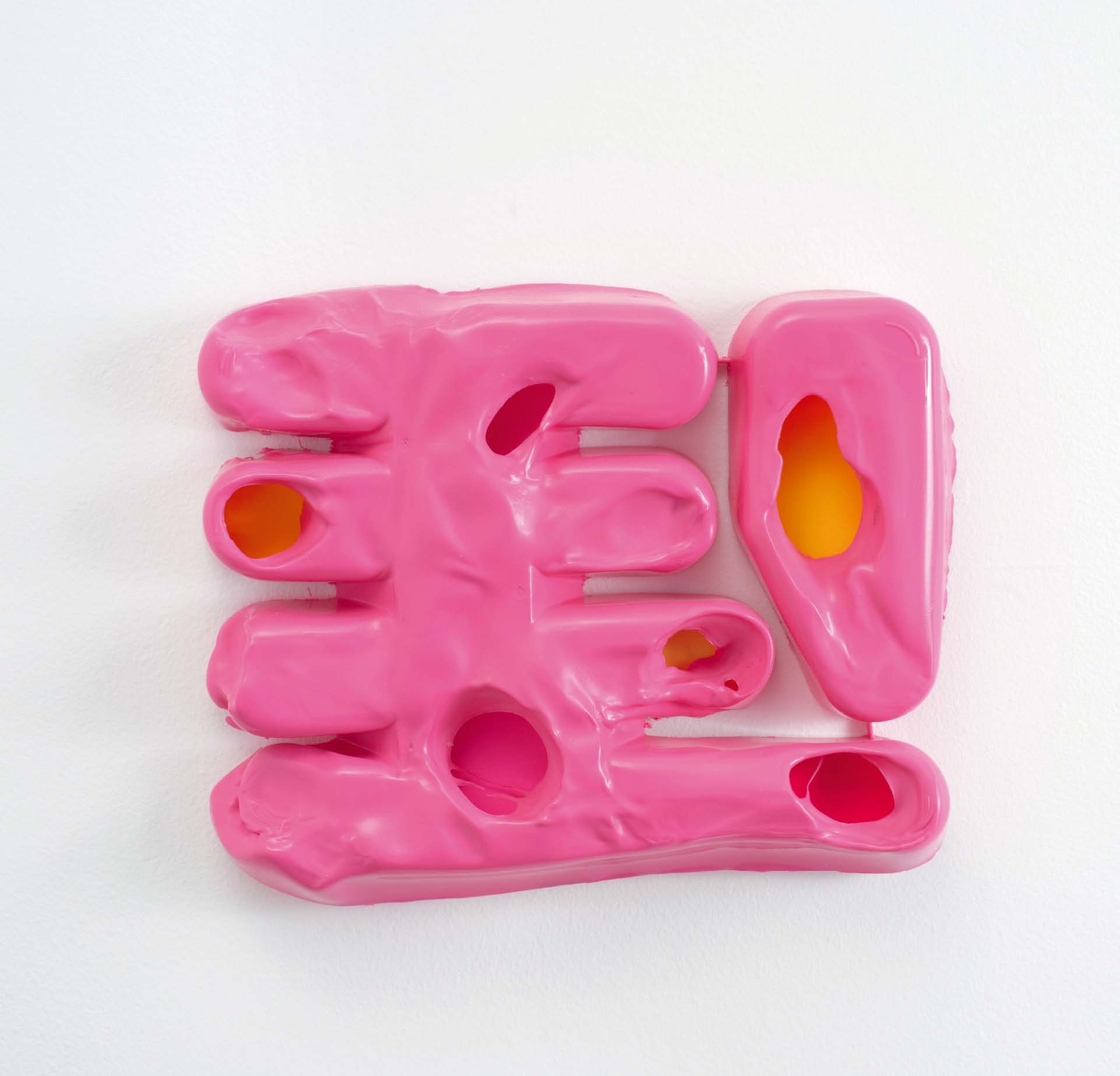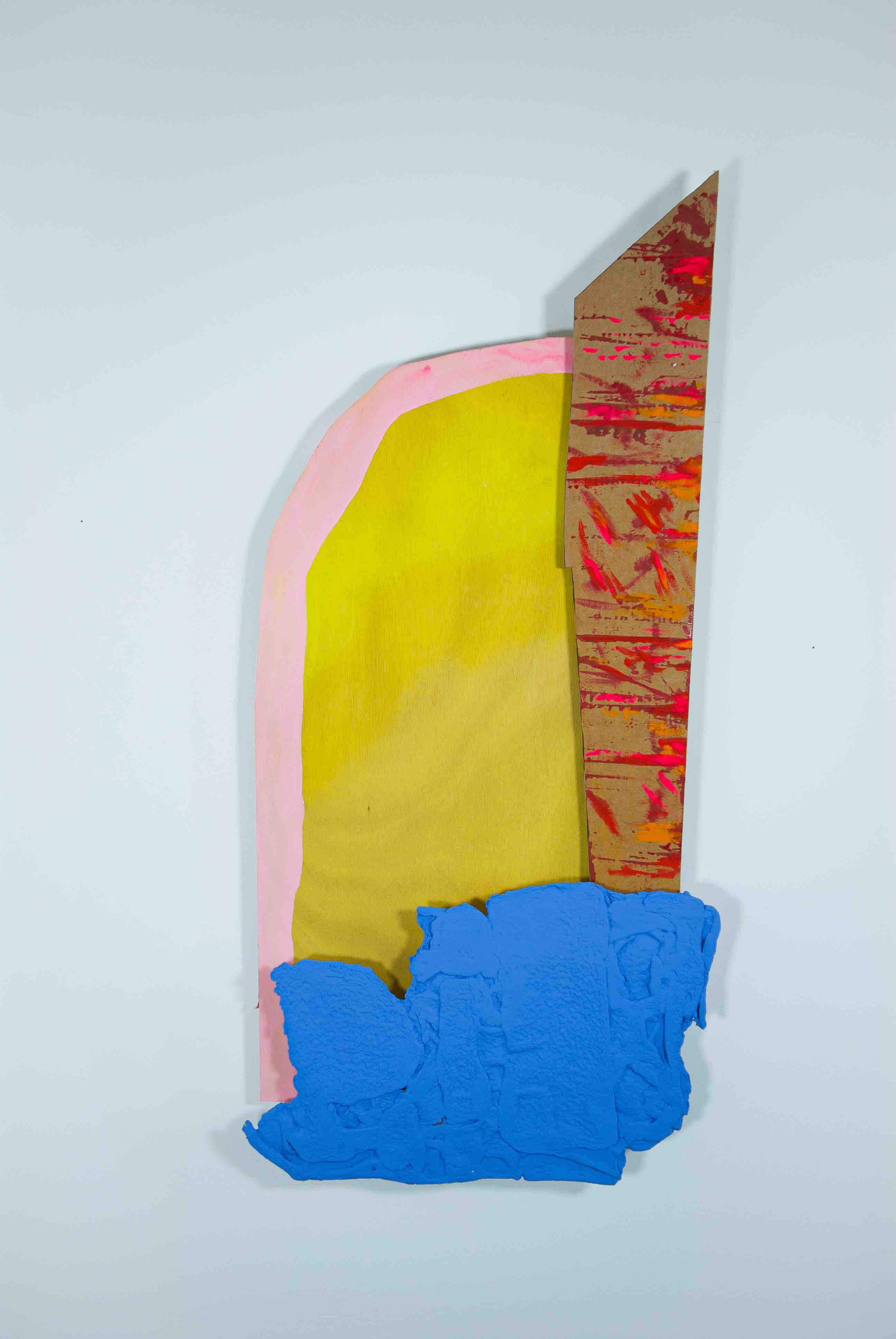 La forme est donc ici première. Pierre Corthay en dit : « Elle devient signe, fragment de… »[5] Plus encore, elle vise à donner une présence tactile à des considérations essentiellement visuelles. Les couleurs, chaleureuses, gourmandes comme celles de confiseries, contribuent, non sans malice, à brouiller encore un peu plus les pistes et à mener le spectateur là où il n’irait pas de lui-même. Pierre Corthay évoque même de potentielles synesthésies : « Puis la couleur, peut être un son. Elle cherche les coins, les recoins, se pose avec attention et douceur sans crier et devient la voix de sa forme. »[6] Son ami Pierre Mabille souligne son caractère volontairement agressif : « Elle est offensive face aux volumes et aux surfaces, s’envole vers des gammes souvent saturées, fluo, il arrive qu’une couleur artificielle recouvre le matériau jusqu’à un effet de dématérialisation. Parfois elle s’associe avec la non-couleur des matériaux bruts, bois ou carton, qui se révèle dans une configuration modifiée. »[7]