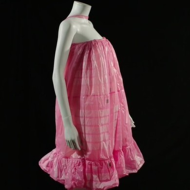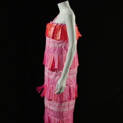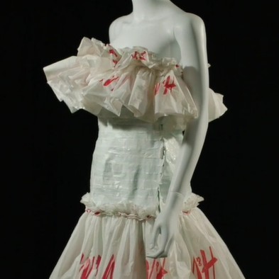 Les Robes de Lawrence Vial ont un statut particulier et ambigu. On les remarque. Serait-ce donc, si l’on en croit Coco Chanel, qu’elles habillent mal ? C’est bien ainsi que la question se pose.[2] Sont-elles faites pour habiller des femmes de chair et d’os ou pour figurer dans une galerie d’art, portées par des mannequins inanimés, ou bien encore pour se comporter comme des tableaux ou des sculptures ? Dans une présentation de mode, elles ne détoneraient pas par rapport à ce que la haute-couture nous habitue à voir dans ses défilés périodiques. Elles sembleraient même plus portables par le commun des mortelles que certaines propositions que l’extravagance condamne à ne rester que des modèles de démonstration.      Objets fonctionnels ou œuvres d’art ? Telle est la question. La réponse s’impose rapidement quand on prend conscience de leur matériau : elles sont réalisées avec des sacs en matière plastique, donc, par nature, peu durables et fragiles. Pourtant, leur créatrice, styliste, modéliste et plasticienne, diplômée en communication visuelle, y apporte tout le soin et toute la technique qu’elle met en œuvre, dans sa pratique professionnelle, dans le monde du théâtre, pour réaliser des costumes portables par des acteurs, mais aussi une réelle inventivité pour sublimer une substance banale.      Nous sommes donc ici face à une première contradiction. Peut-être faut-il y voir une volonté de projection de la personnalité de l’artiste vers un statut autre, de l’actant vers l’agi, du sujet vers l’objet. Niki de Saint Phalle l’exprimait fort bien : « Je pense que mes boas, mes bottes, mes robes rouges, mon déguisement ne sont autre chose que des accessoires de ma création, exprimant le désir de faire de moi-même un objet. »[3] Lawrence Vial voulant se faire objet ? Il y a probablement un peu de ceci dans ses Robes, mais on pourrait évoquer le propos, diamétralement opposé de Louis Scutenaire qui écrivait : « La personnalité est la garde-robe du moi. »[4] Il faut probablement y voir une sorte de dialogue  silencieux, une façon d’exorciser une difficulté à dire ce que l’artiste ne sait, ne peut ou ne veut articuler avec des mots. Dans le cas présent, Lawrence Vial utiliserait la robe pour exprimer, pour subjectiviser, son moi… Peut-être aussi ses Robes se comportent-elles comme des garde-corps, recourant à un langage visuel que les mots ne sauraient exprimer… On doit aussi y voir aussi un lointain écho au propos d’Annette Messager : « Être une artiste signifie guérir continuellement ses propres blessures, et en même temps les exposer sans cesse. »[5]      Ayant longuement échangé avec Lawrence Vial, je pense que le nœud de sa production, dans ses Robes mais aussi dans ses autres œuvres, réside dans ce perpétuel va-et-vient entre chosification et distanciation, entre appropriation et dénonciation. C’est ce qui la rend difficilement lisible – ou, pis encore, taxer de facilité – pour qui ne veut pas prendre le temps de s’y attacher et d’y réfléchir. Mais n’est-ce pas la vertu première d’une œuvre d’art que de forcer le spectateur à cet effort ?      Au-delà de ce premier niveau de lecture, les Robes de Lawrence Vial nous interpellent de bien d’autres façons.      Tout d’abord, la relation entre contenant et contenu. Des sacs en matière plastique qui constituent son matériau de départ, Lawrence Vial dédaigne le contenu pour ne s’intéresser qu’à leur rôle de contenant de denrées matérielles ou culturelles. Elle les dénature, dans une forme d’acte transgressif, pour leur conférer le rôle d’enveloppe d’un corps féminin, présent ou fantasmé. Transfert du matériel vers l’humain, mais un humain qui n’est manifesté que par un mannequin en résine ou par le vide[6]. Une absence inquiétante en forme d’acte de protestation... Dans une de ses comédies, Georges Feydeau met dans la bouche d’un de ses personnages : « Qu’importe la robe : Que regarde-t-on ? L’écrin qui contient le diamant ? »[7] Lawrence Vial se situe aux antipodes de ce propos machiste. Il n’y a pas de diamant. Juste l’écrin… Parfois, la marque figurant sur les emballages – M & H, MAPD, FIAC… – reste visible sur les robes résultantes. Ailleurs, les titres des œuvres incitent à des comparaisons dans les registres les plus variés : Bloody Mary, Manet, Marilyn, Charleston, Pocahontas… J’y vois une tentative presque désespérée de dissimuler pudiquement une question existentielle derrière les apparences de la raillerie ou de la mondanité…      Ces vêtements réalisés dans un matériau dérisoire et périssable, entourant un volume plus fictif que réel nous amènent à considérer une deuxième notion, très prégnante dans les œuvres de Lawrence Vial, tant dans ses Robes que dans ses autres productions, celle du moule, de la matrice ou de l’empreinte. L’artiste s’exprime : « Je cherche à casser les moules, transformer le négatif en positif. J’aime transformer le négatif en positif à partir d’une base, car l’envers m’intéresse tout autant que l’endroit »[8] Mais il s’agit, chez notre artiste, de moules et d’empreintes perdus – cassés dit-elle –, ne générant qu’un seul objet proclamant sa singularité, son originalité, sans possibilité de reproductions multiples, aux antipodes des considérations d’un Walter Benjamin sur l’aura.[9] C’est donc plus à une vision de l’envers des choses, de leurs à-côtés, que Lawrence Vial nous convie. À révéler la face cachée des fausses évidences, des mots, des apparences, du monde. Elle aime citer Paul Valéry : « Les hommes se distinguent par ce qu’ils montrent et se ressemblent par ce qu’ils cachent. »[10] Au-delà d’une diversité des apparences, il s’agit donc d’investir cet inframince ent