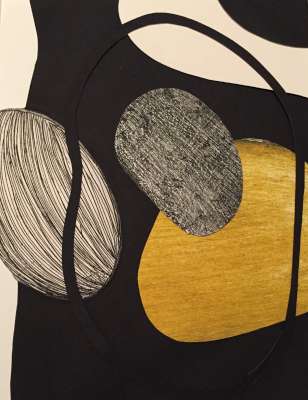 La primauté de la couleur s’impose au premier regard dans les travaux d’Élodie Boutry, d’Élissa Marchal et de Laurence Papouin. Dans le cas de Marielle Guégan, affirmer la suprématie de la couleur peut sembler paradoxal, au premier abord. Cependant, à bien regarder ses travaux, on découvre qu’elle est bien présente, assourdie, certes, mais incontournable, suggérée même parfois dans ses noirs intenses qui nous rappellent que, chez les graveurs, comme elle, les hachures expriment non seulement la texture mais aussi les coloris.