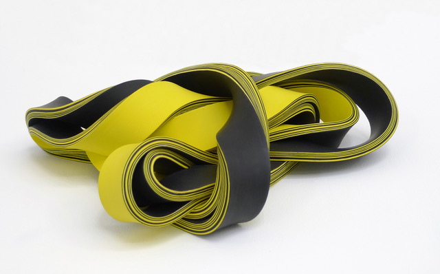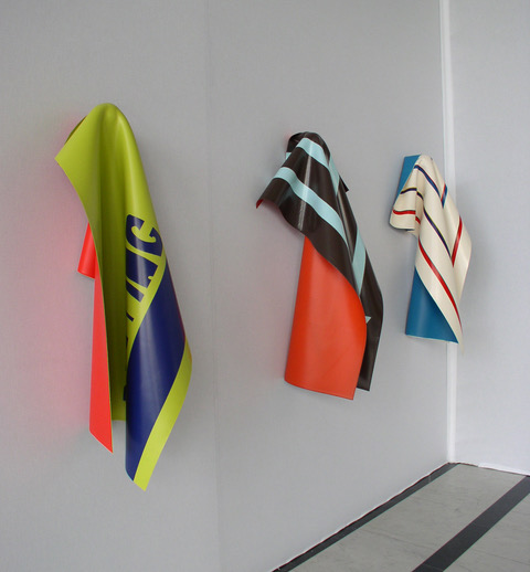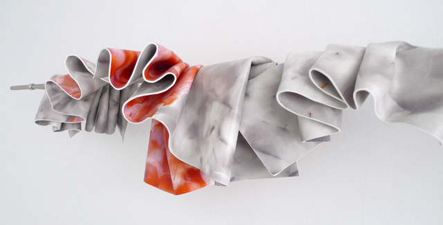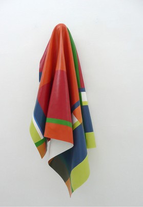 La chose est particulièrement évidente chez Laurence Papouin chez qui le matériau de ses œuvres en volume est de la couleur acrylique, patiemment déposée en couches successives jusqu’à constituer des sortes de peaux malléables qu’elle forme ou déforme à loisir. Leur épaisseur leur confère une matérialité qui renoue avec une longue et ancienne tradition picturale, celle des figurations des supplices de Marsyas ou de saint Barthélemy. Plus tout à fait peintures et pas encore sculptures, les productions de Laurence Papouin s’installent donc dans un entre-deux conceptuel qui subvertit et prend à contre-pied tous les discours académiques ou théoriques sur la peinture, son rôle et son devenir.