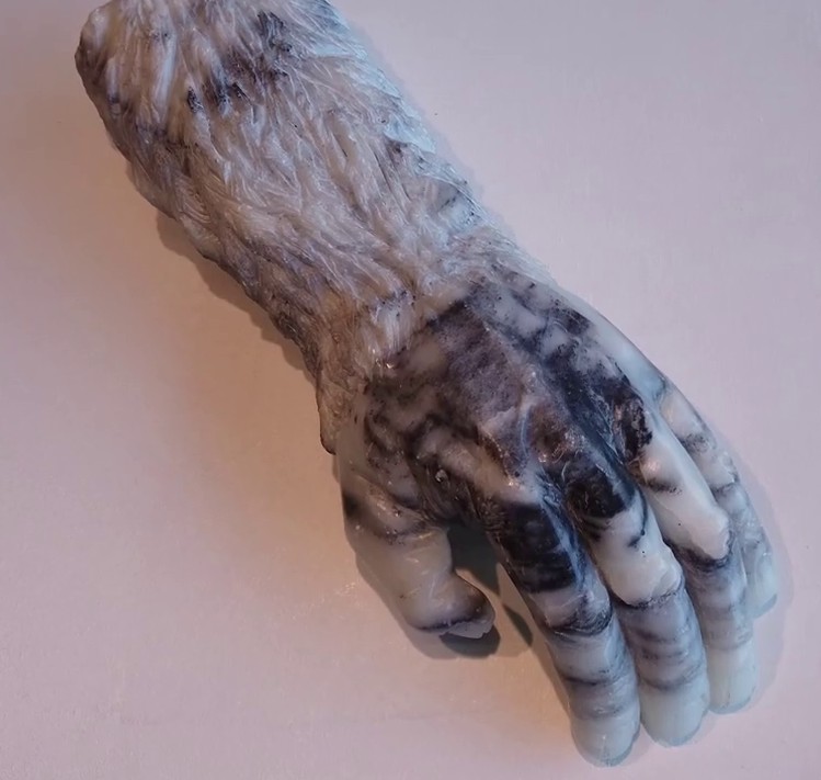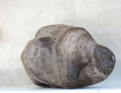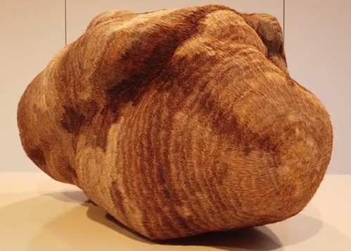 La série incomplète, débutée en 2019, Vers les fauves consiste en trois – sur les sept qui seront ultimement réalisés – moulages en plâtre de parties de corps recouverts de poil de chevreuil, collés un à un sur la totalité de leur surface. Dans ces pièces, Claire Barbier veut, une fois de plus, brouiller les pistes. S’agit-il de rochers, d’organismes vivants, de chaos granitiques si fréquents en Bretagne… Ambiguïté aussi entre les poils, habituellement associés à la virilité et/ou à la bestialité, et les formes, délibérément féminines et sensuelles, même si elles ne sont pas clairement identifiables. La dimension revendicative et protestataire est toujours présente, même si elle reste dans un registre subtil : « Cet usage du poil est également une revendication féministe. Les procès en sorcellerie proclamaient que le mal était dans le poil, ainsi j’en recouvre mes sculptures. Le poil est porteur d’un récit animal mais également genré, en s’autorisant une pensée animiste, l’on pourrait dire que le poil est chargé d’un désir actif et puissant. Un élan vital, loin du désir injonctif imposé à la femme au sein d’une société patriarcale, ainsi on la rase, on voile ses cheveux, on cache son nombril… »[13]