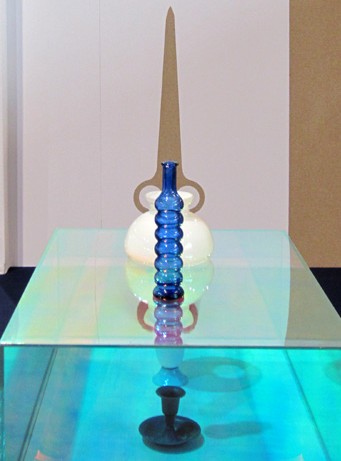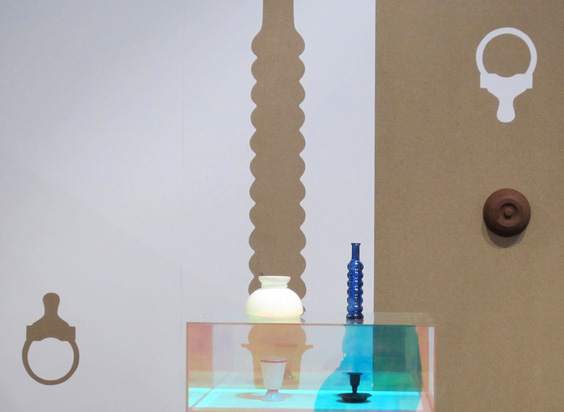 Dans sa démarche, Jeanne Cardinal désamorce, par distanciation, la potentielle dimension affective de certains ustensiles qu’elle utilise. Inversement, pour d’autres objets, les plus nombreux, sans contenu émotionnel a priori, son processus dé-réifie les choses en leur conférant, à rebours du processus décrit par Walter Benjamin[7], au sujet de la reproductibilité technique, l’aura qui leur faisait naturellement défaut. Dans les deux cas, des équipements initialement confinés à un usage domestique – arrosoir, égouttoir, verre-doseur, applique, chandelier, presse-agrumes, sucrier, pot de chambre, vases, abat-jours… – changent de mode de présence et gagnent en universalité. Ils mettent à l’épreuve le spectateur, stimulant ses mécanismes de reconnaissance des formes ainsi que sa capacité à (re)construire un imaginaire à partir de matériaux d’une banale matérialité.