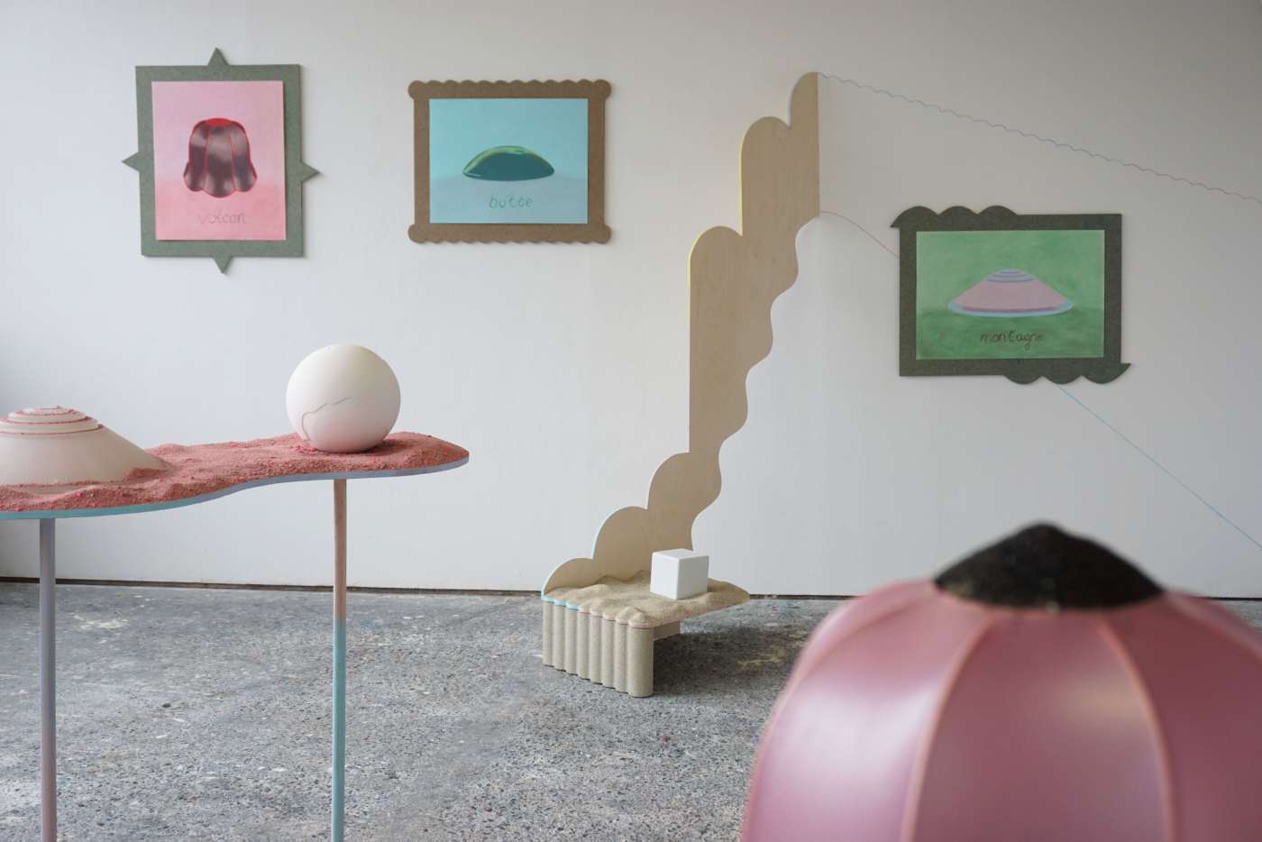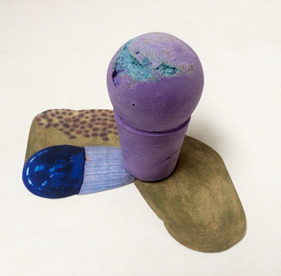 Pour bien comprendre la dilection de Jeanne Cardinal pour le moulage et le recours au plâtre, à la terre ou au papier mâché, il suffit de rappeler sa formation initiale de céramiste aux Beaux-Arts de Limoges… Pour apprendre à mieux en transgresser les règles… Ainsi, dans l’installation Je t’ai prise pour mon ombre, 2019, Glace à la violette sur lit de lumière bleue associe plâtre teinté, photographie imprimée et dessin découpé, Sans titre combine pâte à modeler, papier et paillettes, Royaume vert / Royaume bleu assemble miroirs et porcelaine teintée dans la masse… Plus récemment, en 2020, D’intérieur s’entoure, réunit des objets en inox noir, des tissus plissés et des sculptures en papier.