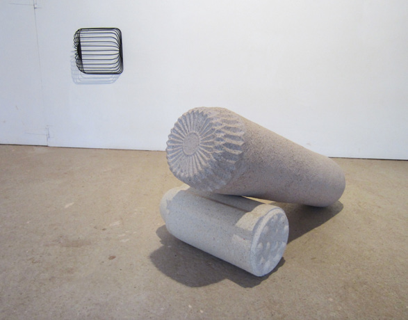En pérennisant en béton des objets initialement fabriqués en matière plastique ou dans des matériaux industriels difficilement recyclables, Jeanne Cardinal veut perturber nos relations avec ces ustensiles dont l’intérêt est souvent dérisoire par rapport à leur contribution négative à la stabilité de nos écosystèmes. Elle interroge ainsi les rôles respectifs des pratiques quotidiennes et de la démarche artistique. Plus globalement, elle dynamite – de façon très pacifique, mais néanmoins corrosive – les structures de notre réalité domestique. Elle les duplique, les réplique, changeant leur nature et leur consistance, tant dans l’espace que dans le temps, au point de nous faire douter de leur matérialité. C’est donc à une forme de jeu de miroirs déformants de notre époque que le regardeur est confronté, l’obligeant, s’il est un tant soit peu honnête, à questionner sa propre relation à ces produits de consommations, souvent inutiles, mais aussi à sa propre relation au temps et à l’espace. Non sans une dose d’humour, par exemple quand l’artiste applique des notices de montage de meubles IKEA à l’assemblage de formes hétéroclites pour donner naissance à des structures incongrues, déroutantes, qui remettent en cause les principes de la logique la plus élémentaire.