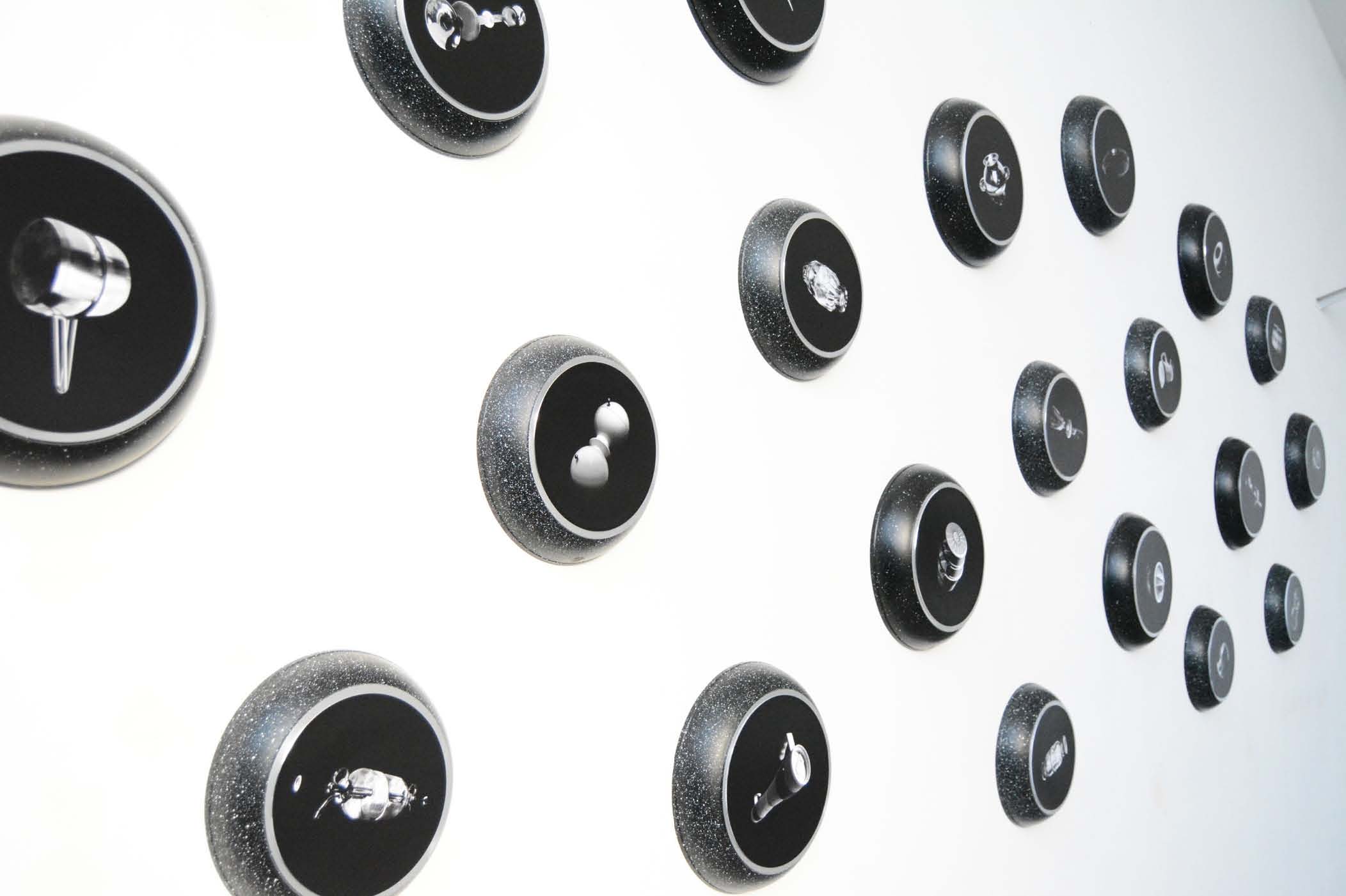 En 2020, Star’s Mirror, se présente comme un ensemble de vingt poêles à frire, débarrassées de leur manche, exposées au mur, comme autant de hublots ou de miroirs dont le fond ne réfléchit rien mais montre des photographies circulaires d’ustensiles de cuisine. Ces images détourées, en noir et blanc sur fond noir, rappellent la représentation des soucoupes volantes dans la littérature de science-fiction, des OVNI… Leur juxtaposition évoque simultanément ou successivement un ciel nocturne étoilé, une escadrille d’engins extraterrestres passés à l’attaque de notre planète ou bien encore un improbable archipel intergalactique.