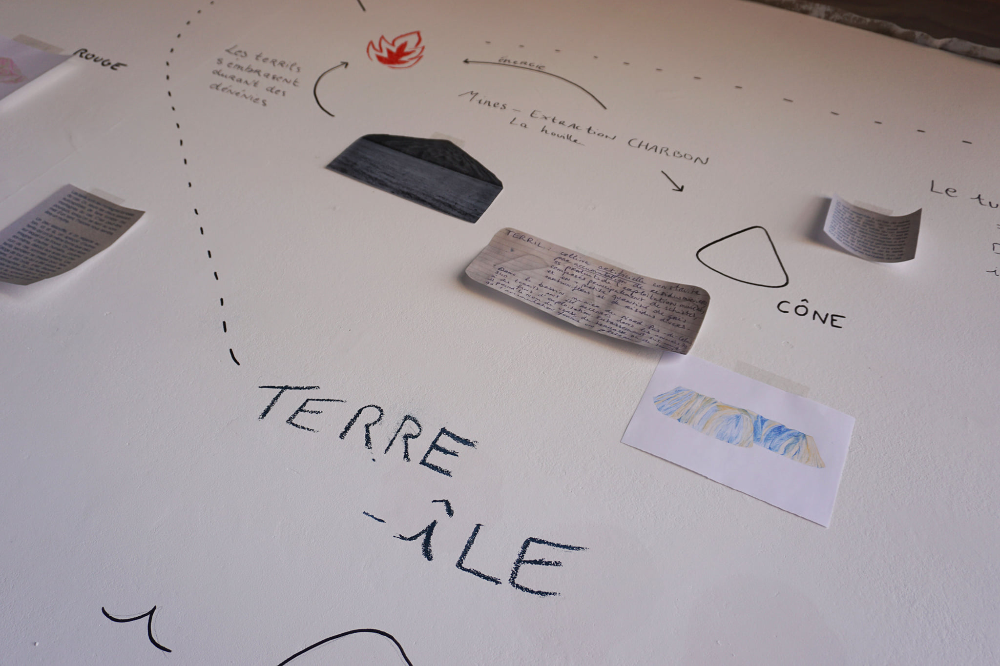 Plus récemment encore, en 2022, lors d’une résidence de recherche à L’H du Siège, à Valenciennes, Jeanne Cardinal a parcouru cette ancienne région minière dont l’activité extractive passée ne se manifeste plus que par des terrils. Elle a joué sur la proximité phonétique de ce mot avec terre-île pour développer toute une méditation sur les formes coniques, îlots, volcans, montagnes, tumulus, atolls, mais aussi sur le feu, l’entassement, le noir, le charbon, la mine… et le regard que l’on porte sur eux… Sans nul doute, ces observations et les réflexions qu’elles ont entraînées seront sources de nouvelles réalisations qui continueront à nous surprendre…