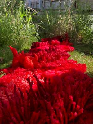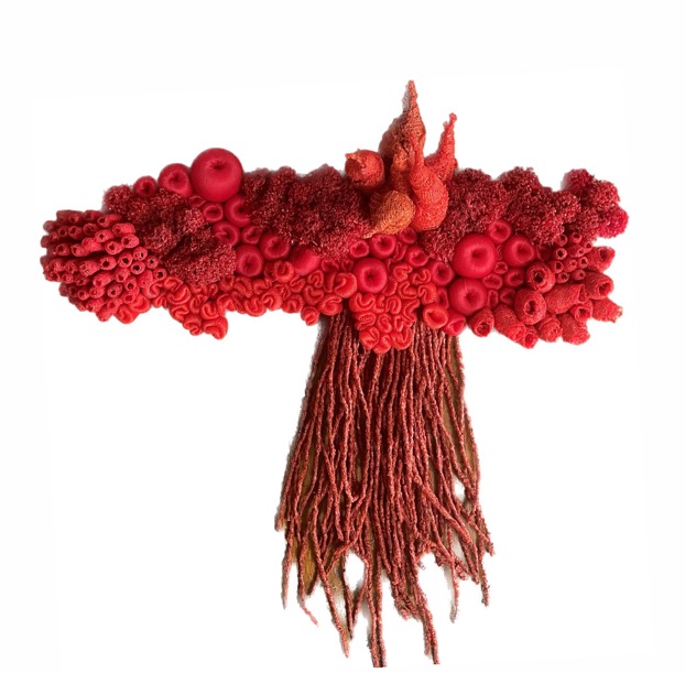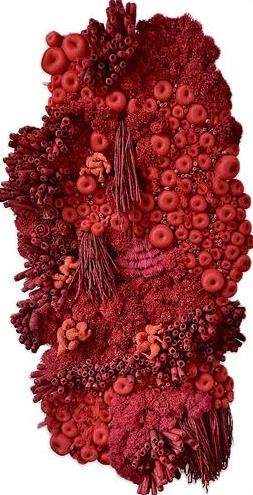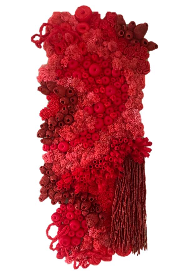 La marque distinctive du XXe siècle est l’encombrement, la prolifération des objets, c’est-à-dire l’hégémonie de la matière. Jean Dutourd[1] Que faire de ces produits ou sous-produits de notre société de consommation – emballages, bouteilles, cordelettes, câbles, ficelles et résidus divers – qui prolifèrent et finissent par nous submerger, au point d’anéantir, par leur accumulation inconsidérée et incontrôlée, notre environnement ? Faut-il comme le couple du roman Les choses, 1965, de Perec, se résigner à une forme de déclassement social en renonçant à s’encombrer de l’inutile ou du superflu : « […] ils comprenaient, parce que partout, tout autour d’eux, tout le leur faisait comprendre, parce qu’on le leur enfonçait dans la tête à longueur de journées, à coups de slogans d’affiches, de néons, de vitrines illuminées, qu’ils étaient toujours un petit peu plus bas dans l’échelle, toujours un petit peu trop bas. » ?      Les artistes ont, depuis longtemps apporté une réponse à ces interrogations en procédant à des détournements ou à des recyclages de matériaux préexistants, souvent devenus inutilisables ou dysfonctionnels. On attribue en général à Marcel Duchamp et à ses ready-mades, qu’ils soient non qualifiés, assistés, réciproques ou malades, les premières tentatives significatives de détournement d’objets. Il a été précédé et suivi par de nombreux autres artistes qui ont recouru à ces méthodes. Pablo Picasso, Georges Braque ou Alexandre Archipenko, dès 1912, donc avant la Roue de bicyclette de 1913, le Porte-bouteilles de 1914 ou la très médiatisée Fontaine de 1917, avaient déjà pratiqué des emprunts à des objets banals de la vie de tous les jours. Après eux, des créateurs aussi différents que Jean Dubuffet, Kurt Schwitters, Louise Nevelson, Daniel Spoerri, John Chamberlain, Wolf Vostell, Joseph Beuys, Man Ray, Joseph Cornell, Robert Rauschenberg, Edward Kienholz, Arman, Jean Tinguely, George Herms, Bruce Conner, Bertrand Lavier…, pour n’en citer que quelques-uns, ont pratiqué le détournement ou le recyclage d’objets trouvés, neufs ou usagés, pour composer leurs œuvres… Plus généralement, le pop art, le nouveau réalisme, Fluxus et l’arte povera sont aussi les héritiers historiques de ces pratiques. Notons aussi que les arts populaires ont, de tout temps, été nourris par de telles démarches. Il en est de même de l’enfant qui fait, d’un vieux manche à balai, un très opérationnel cheval…      Pour le Trésor de la langue française, le détournement est une « action de changer la direction initiale d’une voie » et le recyclage une « opération consistant à soumettre un fluide, une matière énergétique, un produit à un traitement supplémentaire en vue de compléter sa transformation, son épuration et plus généralement de permettre sa réutilisation ; par métonymie, le résultat de cette opération. »      La démarche créatrice de Laurence Aellion s’inscrit dans cette double approche : recycler et détourner. Elle est aussi simultanément esthétique, éthique et écologique. Comme beaucoup d’artistes de sa génération, elle se rebelle contre les effets mortifères de ces dizaines de millions de tonnes de déchets en matière plastique qui contribuent à créer ce sixième continent, s’étendant, dans les fleuves, les mers et les océans, sur six fois la surface de la France, parfois sur plus de trente mètres de profondeur. Il contribue à l’extinction de la vie marine, à la disparition des récifs coralliens et à la réduction de la biodiversité… Cependant, plutôt que se cantonner à une protestation sans grands échos ni effets, notre artiste a décidé de mobiliser notre attention en créant, à partir de ces rebuts en devenir, des œuvres d’art dont les apparences séduisantes ne peuvent que nous interpeller…      Pour arriver à ses fins, elle collecte méthodiquement et stocke toutes sortes de déchets en matière plastique : filets, sacs, capsules, flacons, gaines de câbles, films de polypropylène… Elle les classe par types et par couleurs pour constituer un nuancier de teintes et de textures – l’équivalent de la boîte de couleurs ou de la palette du peintre – dans lequel elle puise pour ses réalisations. Elle les noue, tisse, fusionne, éclate, assemble, tricote… pour réaliser de petits objets ou de grandes structures, présentées en suspension, au mur ou au sol. Ces réalisations proliférantes et turgescentes, dans des camaïeux d’une couleur dominante – souvent le rouge ou le vert, mais aussi le violet, le bleu et le jaune orangé –, peuvent, selon la sensibilité du spectateur, évoquer des bancs de coraux, des anémones de mer, des viscères ou des végétaux ayant subi d’improbables mutations génétiques.      Dans sa série des Immarcescibles, 2022, Laurence Aellion, présente, sous des cloches de verre, une série de petites compositions coralliennes réalisées à partir de déchets en matière plastique. Leurs couleurs sont des modulations monochromes allant du jaune vers l’orangé, passant par le rouge, le rose, le violet, puis le vert, le bleu, le marron pour terminer sur du noir. Comme leur nom l’indique, elles sont imputrescibles. Elles ne sont ni biodégradables ni épuisables… Dans une démarche à caractère autoréflexif, non sans un brin d’ironie amère, l’artiste nous rappelle que ces structures impérissables sont les mêmes qui, déversées inconsidérément dans la nature, contribuent à la disparition de ces coraux qui leur ont servi de modèle et auxquels elles se substituent. Renversant les rôles, ce sont les déchets qui sont préservés sous un dôme de verre, comme s’il s’agissait de les défendre des agressions de l’environnement… La question posée par l’artiste est de savoir si nous sommes prêts à accep