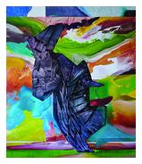 | Jade Fenu pratique une abstraction gestuelle généreuse et libre, souvent dans de grands formats. Son travail mêle improvisation et composition, recourant à des techniques variées, jusqu’à ce qu’un équilibre, propre à chaque toile, s’impose et déclenche l’arrêt du travail. Il décrit sa démarche en ces termes : « Mon travail débute à chaque fois de façon non préméditée: je laisse surgir et émerger des formes amorçant leur propre narration. Puis vient un moment où je court-circuite cette spontanéité, en utilisant successivement des processus de défiguration, ponçage, grattage, bombage ou recouvrement. Au fur et à mesure que ces strates s’entremêlent, je rentre en composition : je cherche à réconcilier en permanence une forme d’expression initialement vierge de toute caractérisation préalable et une intention beaucoup plus personnelle. Je m’arrête lorsque le tableau trouve son autonomie et qu’il me permet de saisir une autre réalité que la mienne. » Ses thématiques de prédilection sont la nature et sa profusion, dans ses aspects perpétuellement changeants, en mutation, et l’univers urbain, avec sa saturation de signes et son incitation à la surconsommation. Ces deux mondes s’entrechoquent, dans un processus où les accidents et les imprévus jouent un rôle moteur. Ces aléas sont, selon les propos de l’artiste, la contrepartie de sa prise de risque dans l’expression de sa liberté créatrice. Il en résulte des espaces de grande amplitude, même dans des formats restreints, débordant d’énergie, de rythmes, de mouvements plus ou moins concertés… Une façon de figurer les conflits, la lutte pour la survie de l’artiste dans un monde qui lui est, au mieux, indifférent et, le plus souvent, hostile. |