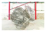 | Les sculptures de Nicolas Giraud-Loge sont paradoxales en ce qu’elles sont tout aussi dessins dans l’espace que volumes, à la fois lignes et matières, et encouragent à passer outre le Noli me tangere, l’interdiction institutionnelle faite au spectateur de toucher les œuvres. Elles sont réalisées en acier, aluminium, bois naturel, contreplaqué, carton, élastomère, basalte, résine, PVC, vinyle, fil de polyuréthane, film polyéthylène, mousse, auxquels se mêlent des objets de récupération divers ou des éléments industriels détournées de leur usage, comme des pièces en grès sanitaire ou des vaubans, ces barrières métalliques servant à contenir la foule lors de manifestations… Ses structures sont souvent complexes, parfois rhizomiques ou fractales, mais toujours très graphiques, même lorsqu’il s’agit de volumes pleins. Le spectateur joue un rôle clé dans la démarche de Nicolas Giraud-Loge, chaque pièce étant conçue en fonction de la présence d’un observateur – invité aussi à toucher ou palper l’œuvre – dans l’espace qu’elle occupe. Nicolas Giraud-Loge affectionne le travail collectif. Il a souvent collaboré avec Charles-Henry Fertin et avec d’autres artistes, notamment dans le collectif des Fondeurs de roue. Ce projet a pour objectif de restaurer et réhabiliter un ancien manège forain pour le transformer en plate-forme de présentation – mais aussi d’expérimentation sensorielle – des travaux de onze autres contributeurs : peintures, sculptures, compositions sonores ou lumineuses. |