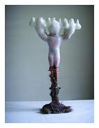 | Patrick Crulis, céramiste, a reçu une formation de peintre. Cet apprentissage se devine dans ses sculptures en grès émaillé, en ce qu’elles s’inscrivent dans le lignage fécond de Soutine, Kandinsky, Picasso, Basquiat, Baselitz et, au-delà, des expressionnistes du début du XXe siècle. Comme ces derniers, Patrick Crulis projette dans ses œuvres ses propres émotions, sa vision critique du monde, qu’il manifeste notamment par le choix arbitraire d’objets apparemment hétéroclites, par des déformations et le recours à des couleurs souvent criardes. Cette position est remarquable dans le monde de la céramique contemporaine où la recherche d’une certaine joliesse reste encore le souci principal de la plupart des créateurs. Chez Patrick Crulis, l’exécution rapide génère d’inévitables accidents qui sont acceptés – voire souhaités – comme inhérents au processus créatif. Comme la contrepartie pleinement assumée d’une infinie liberté… Ses formes sont généralement verticales mais affectent une certaine mollesse, réalisant une sorte de synthèse entre des principes masculins et féminins. L’opposition dialectique du ferme et du mou y est affirmée, dans des agencements qui font entrer en collision les règnes animal, végétal et minéral. On peut y reconnaître des fragments de formes industrielles – carters, isolateurs, amortisseurs, soupapes, grilles d’aération, durites… – mêlés à des évocations d’objets familiers, à des figurations d’animaux marins – notamment à des anatifes – ou à des volumes purement abstraits. Le tout est assemblé avec une verve truculente, une gourmandise rabelaisienne, un humour corrosif, exacerbés par l’arbitraire jubilatoire des couleurs, même quand elles restent dans un registre modéré. Plasticité de la terre, fluidité des couleurs, rejet du fini, exaltation de la rapidité sont autant de caractéristiques qui font des œuvres de Patrick Crulis de véritables hymnes à la vitalité, une raison d’espérer au-delà de la pesanteur du quotidien. |