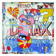 | Artiste peintre depuis plus de 20 ans, implanté en Bretagne, de formation journalistique, Emmanuel Pajot a toujours trouvé du temps pour peindre. Depuis 2012, il se consacre entièrement à cette activité. Ses toiles figurent une profusion de personnages fictifs ou réels, d’inscriptions, de formes géométriques, dans des couleurs souvent criardes. Elles doivent simultanément au Pop Art, au Street Art et à la bande dessinée, mais elles s’en démarquent cependant pour trouver une voie originale, comme à égale distance de ces trois tendances. Le recours à la peinture à l’huile constitue un de ses principaux facteurs discriminant, avec ses conséquences en matière de lenteur du processus de réalisation et d’obligation de laisser la toile en repos pour le séchage. Autre caractéristique distinctive, la volonté, presque obsessionnelle, de saturation de l’espace. Pour ce faire, Emmanuel Pajot procède par juxtapositions, sans souci de cohérence d’échelle, mais aussi par superpositions et collages d’éléments exogènes. Il en résulte une forme de profondeur qui ne doit rien aux ficelles de la perspective traditionnelle. L’artiste explique : « Chaque espace est souvent occupé à la limite de la saturation. Je joue avec l’abstrait, je veux que le regard se perde et divague. Dans mes toiles, la profondeur peut aller au-delà de la rétine. » Cet au-delà de la rétine entraîne le spectateur dans des souvenirs anciens : personnages de dessins animés d’autrefois, revues enfantines désuètes, images publicitaires démodées, inscriptions ou tags ayant perdu tout sens… Au-delà d’un aspect que l’on pourrait trop rapidement qualifier de superficiel, il s’agit donc bien d’un travail en profondeur sur la mémoire et ses reliques. |