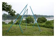 | Les sculptures linéaires, en acier peint, de Frédéric Bertuglia se présentent comme de grands dessins dans l’espace, comme des épures d’architecture qui auraient acquis une troisième dimension. Elles sont posées, à la limite du déséquilibre, et ne délimitent pas des surfaces, mais des volumes, des fragments de vide qui prennent, par leur effet, une matérialité presque tangible. En tournant autour de l’œuvre, ces polyèdres, qu’on ne peut qualifier de virtuels, découpés dans le néant, changent de structure et s’animent lentement, donnant accès à la quatrième dimension, celle du temps. Chez Frédéric Bertuglia, le vide se fait ainsi masse sculpturale mouvante, parfois fuyante, parfois rétractée, selon l’angle de vision du regardeur. L’interprétation est laissée libre. Certains y verront des bâtis ou des charpentes, d’autres des portes ou des forêts, des divinités totémiques tutélaires ou des personnages stylisés, des groupes familiaux ou des antagonismes belliqueux, des humanoïdes ou des gigantesques arachnides… Quelle qu’en soit la lecture, l’artiste déclare vouloir amener le spectateur à se projeter à travers l’œuvre vers un questionnement et une réflexion sur la nature du temps, tant par l’approche de la nature suspensive des mouvements arrêtés et déséquilibrés, que des interprétations liées aux caractères humanoïdes des pièces et des relations qui se jouent entre elles. |