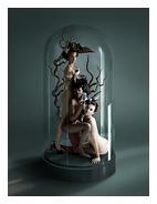 | Les photographies de Delphine Cencig dérangent. Ce n’est pas sa technique, irréprochable, ni ses compositions, souvent inspirées par la peinture classique, mais son univers plastique qui déstabilise le spectateur. Il est pourtant d’une étrange beauté, mais cette beauté relève plus de celle adulée par les surréalistes, admirateurs de Lautréamont et de sa rencontre fortuite sur une table de dissection d’une machine à coudre et d’un parapluie, que des canons habituels. On peut aussi y voir des scènes qui pourraient appartenir au monde de Jérôme Bosch ou à celui de la littérature fantastique de Poe ou de Kafka. Les personnages qui y évoluent ont un statut intermédiaire entre humain et elfe, entre poupée désarticulée et humanité bien incarnée, entre littérature pour adultes et livres d’enfants, entre adoration et sacrilège… L’atmosphère est onirique mais peut virer au cauchemar, comme s’il s’agissait de jeux anodins mais probablement dangereux, d’un perpétuel état d’instabilité entre vie et mort. La sexualité et la sensualité y sont à fleur de peau, mais jamais explicitées. Une forme de féminisme y est exprimée, mais il semble en permanence refoulé par des images qui peuvent faire de la femme une marionnette ou une criminelle, la confiner sous une cloche de verre… Finalement, dans cet univers en suspension permanente entre des écueils invisibles mais fortement suggérés, ce que Delphine Cencig veut exprimer n’est que le tragique de la condition humaine et, plus spécifiquement, de la féminité… |
