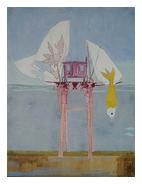 | Stéphane Dauthuille peint à la gouache et à la cire sur des feuilles de papier qu’il maroufle ensuite sur toile. De cette matière picturale résultent les couleurs douces et sensuelles, mais cependant affirmées, qui baignent ses compositions. Ses thèmes de prédilection sont dans le même registre, combinant figures humaines et objets placés dans des situations ambiguës, dans un alliage d’empathie et de douceur, d’élégance et d’étrangeté, d’impudeur et de candeur… Chimères et mélanges, selon ses propres mots. Dans ses séries les plus récentes, il met en scène des cabanes de toutes dimensions, placées dans des paysages oniriques ou isolées et détourées, résultant parfois de la métamorphose improbable de chaises. Ces dernières évoquent l’innocence des jeux de l’enfance, quand tout devient prétexte pour construire des abris protecteurs, substituts au sein maternel. Il y est question d’indécision entre intérieur et extérieur, de fusion entre maison et paysage, de ressemblances incertaines, de constructions fragiles et instables, de voisinages improbables… Autant de points laissés en suspens, de questions posées mais laissées sans réponse univoque… Ces compositions racontent évidemment des histoires intimes, mais la clé de lecture n’en est jamais livrée. À chacun de les interpréter à sa façon, d’y projeter ses rêves ou ses fantasmes, d’en faire la base de sa propre réflexion, bien au-delà de ce qui est simplement et presque naïvement donné à voir… |