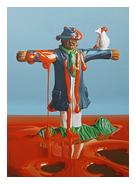 | Au premier abord, les toiles de Sylvie Herzog ont quelque chose de séduisant, de drôle. On y voit des figurines de héros bien connus ou des objets communs, tels cet épouvantail à moineaux ou ce godillot isolé, nappés d’un coulis noir, rouge ou orange – réglisse, sauce tomate ou glacis de pâtisserie – qui les laisse souvent indifférents. Il y a, dans ces images, une forme de sensualité gourmande, de plaisir presque sadique de salir ces idoles plus ou moins consentantes, à tout le moins incapables de réagir… Une forme de régression vers le stade anal… Il n’en est rien, cependant. Très vite le regardeur est poussé à lire ces toiles autrement. Le noir ne serait-il pas le goudron d’une immense marée noire, le rouge le sang de victimes humaines ou animales, l’orange la coulée d’un pesticide ou d’un défoliant ? D’ailleurs, la série s’intitule Jeux de guerre. Le doute n’est plus permis… Les peintures de Sylvie Herzog sont donc militantes. Elles dénoncent le triste monde que notre lâcheté ou notre indifférence est en train de léguer à nos enfants. Il y est donc question de pollution, de toxicité, de censure, de lobbies, de sang versé… L’artiste pose clairement la question : ces héros enlisés dans la peinture seraient susceptibles de nous délivrer de ce monde ? La réponse est sans appel : non, ils sont prisonniers de notre société… C’est donc à nous, et non pas à des tiers, aussi célèbres ou connus soient-ils, de prendre en charge le problème et de lui apporter son indispensable solution. Une question de vie ou de mort… |