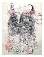 | Les grands dessins sur papier d’Arnaud Schmeltz sont denses, peuplés de plusieurs couches superposées de personnages, d’animaux, de membres épars, d’éléments architecturaux… dans un esprit qui évoque la liberté gestuelle de certaines productions primitivistes ou les peintures pariétales de nos très lointains ancêtres. Le trait y est souvent virtuose, simple et allusif, les détails fouillés, malgré une première impression, vite démentie, de laisser-aller. Plusieurs strates d’histoires semblent s’être empilées sur la surface, comme dans un palimpseste dont les couches inférieures auraient été mal effacées. On peut aussi penser à des cadavres exquis surréalistes dont les interventions successives ne seraient pas séquentielles mais empilées. Il en résulte une évocation de mythologies réelles – tel ce Minotaure – ou fictives, dont le fil d’Ariane reste à dérouler… De la saturation de la surface du subjectile surgit une explosion d’images et de sens qui entraînent le regardeur dans des univers qui peuvent être simultanément hallucinatoires, chimériques ou fantasmagoriques. La hiérarchie traditionnelle entre forme et fond est totalement subvertie, chaque strate servant d’assise aux suivantes, sans qu’il soit possible de discerner ce qui est devant et ce qui est derrière. Tout affleure simultanément dans un exercice de contraction-dilatation de l’espace et du temps qui se traduit par une sorte de vertige, une mise en abîme, laissant le spectateur au bord du gouffre de ses propres fantasmes… |