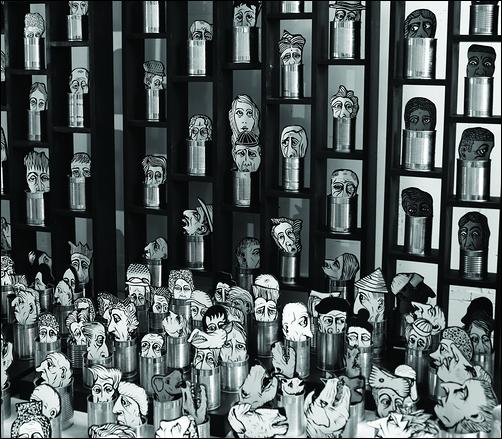 | Venu de la gravure et de la sculpture, passé par la peinture et le dessin, Hervé Bourdin jette, dans ses installations, un regard acide, corrosif, décapant, mais aussi rempli d’une profonde empathie pour les personnages mis en scène. Tragédie et grotesque s’y côtoient toujours. Par certains aspects, son graphisme évoque celui de la bande dessinée, domaine que l’artiste a investi en produisant des albums qui donnent à ses compositions une dimension narrative plus explicite. Il ne recherche pas l’effet plastique, comme le font tant d’artistes de notre temps : la forme reste seconde par rapport au sens et vient comme un supplément pour appuyer le propos. Un propos direct, qui rejette la métaphore, pour placer le spectateur face à ses responsabilités. Ses œuvres se comportent, en quelque sorte, comme des miroirs réfléchissant notre propre indifférence, notre propre inhumanité. Ses installations récentes recourant à des matériaux de récupération, notamment des boîtes de conserve, illustrent, en termes plastiques et avec un humour grinçant, les effets des récents confinements que nous avons dû subir. L’humanité, condamnée à se nourrir de conserves et recluse dans ces mêmes boîtes… |