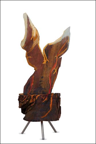 | Coskun pratique la taille directe du bois. De la masse il dégage des figures qui, en raison de l’utilisation d’outils mécaniques tels que la meuleuse, la tronçonneuse, la disqueuse, apparaissent entaillées, striées. Le sujet principal de ses œuvres est le corps humain. Les clins d’œil à l’histoire de l’art sont multiples, comme les proportions, qui sont à la fois respectées et déformées, ou bien une attitude du sujet sculpté qui évoque la statuaire égyptienne ou grecque. En rehaussant par endroits ses sculptures de blanc ou de brou de noix, Coskun cherche à perturber le regard. Une façon d’accentuer certaines expressions, d’empêcher une lecture trop littérale du corps qu’il a sculpté. La polychromie s’inscrit dans une tradition de la statuaire, mais c’est aussi pour l’artiste une manière de travailler dans la continuité sans séparer la sculpture du dessin. C’est ainsi qu’il explique son utilisation de l’engin mécanique, puissant et rapide qui lui permet de retrouver une vitesse d’exécution similaire à celle qu’il possède quand il dessine. |