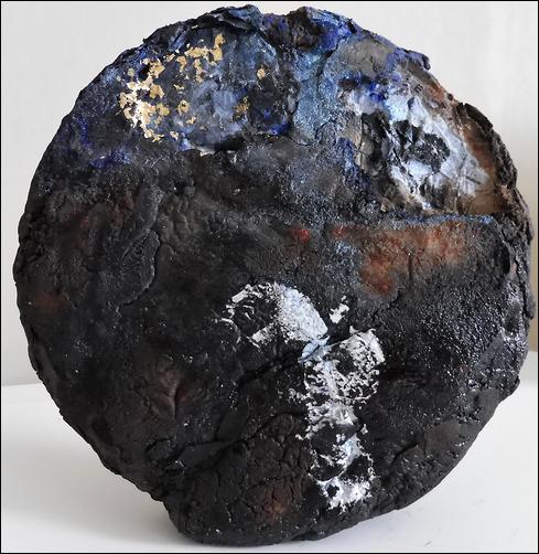 | Les grands dessins d’Annie Lunardi sont réalisés sur des feuilles de papier qui ont préalablement subi les outrages des intempéries de la Nature, du temps extérieur ou de la part de l’artiste : froissements, déchirures, perforations, déformations... Ils allient empreintes de terre, pastel sec et pierre noire. Leur titre, Genèse, évoque un retour aux origines, la volonté de reconstituer une histoire, une quête existentielle, celle de territoires auxquels leur créatrice s’identifie mais que le spectateur peut aussi faire sienne. Il en résulte des paysages improbables mêlant des visions organiques, viscérales, végétales et minérales en un tout qui sert d’exutoire à des inhibitions, à des angoisses, à des histoires refoulées qui sont celles de tout créateur, mais dans lesquelles le regardeur peut aussi se projeter. Temps, espace, corps, monde intérieur et Nature, introspection et universalité, conservation et déliquescence se combinent ainsi pour faire surgir des images flottant dans un univers apparemment apaisé mais qui ouvrent grand les portes vers le rêve et la méditation… |