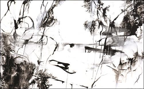 | De sa peinture, Frédéric Fau écrit qu’elle « s’affirme dans sa matérialité, tout en proposant au regard des paysages incertains. Les gestes se répètent, s’articulent, la matière s’étend en flux contrôlés. D’un rapport à la fois intuitif et distancié au tableau, émergent des possibilités, autant d’images confirmées ou déroutées par des décalages et des digressions. D’un tableau à l’autre s’établissent des correspondances, un rythme, une continuité. » Sa palette se réduit au noir, au blanc et à leurs mélanges, conférant à ses paysages revisités un aspect simultanément réaliste et improbable, quelquefois fantomatique. De fait, ce ne sont que des prétextes pour développer un langage essentiellement graphique, presque calligraphique, parfois proche de la non-figuration. Il n’y est question que d’équilibre de masses, de profondeurs suggérées, de nuances de gris, de balance entre plein et vide, de tensions entre hasard et maîtrise, de traces de gestes plus ou moins nerveux, de rage et d’apaisement… Plus que jamais, chez Frédéric Fau, le propos de Léonard de Vinci, qui faisait de la peinture une chose mentale, nous semble une évidence… |