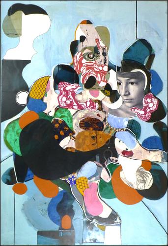 | Pascal Marlin crée des individus avec des collages de matières hétéroclites – papier calque, bouts de tissu, fragments de radiographies, photogra-phies… – sur lesquels il peint. Ses sujets évoluent dans des environnements sans profondeur, traités à plat, dans des couleurs mates et uniformes. Seules les déstructurations des figures, que l’on imagine démembrées et rafistolées à la va-vite, suggèrent le volume. Les visages, réalisés à partir de collages photographiques, restent les uniques composantes facilement identifiables dans ces corps boursouflés, difformes, bouffis, comme affectés d’une impitoyable maladie génétique. Tout ceci serait tragique, si les couleurs, douces et raffinées ne venaient prendre le contrepied de la dureté du propos. On comprend alors qu’il ne s’agit que de la projection de fantasmes, d’un exutoire à des pulsions destructrices, mais aussi d’un salutaire exercice de défense et illustration de la diversité. |