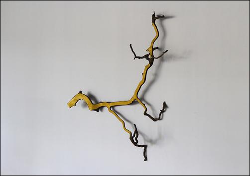| Trois verbes actifs sous-tendent et irriguent le travail et la démarche d’Étienne Poulle. Il déclare : « Comprendre. Quelle que soit la dimension du projet, du subliminal au monumental, rien ne se crée sans prendre en compte le réel. L’observer, en reprendre les codes et les signes, et provoquer la surprise. Surprendre. C’est prendre les choses en main, et faire que la pensée, tout en fabriquant, suive la main, et inversement. Engager. Il n’est pas d’entreprise sans engagement. Pour la mener à bien, il est souvent nécessaire de convoquer d’autres savoirs, d’autres expériences, de savoir les coordonner. » Son travail récent traite de l’hybridation de produits végétaux – essentiellement des troncs d’arbres et des branchages – et d’élément mécaniques empruntés aux jeux de construction pour enfants, de la famille des Lego©. La confrontation de ces deux univers impose au spectateur une réflexion sur ce qu’est la sculpture. Dans sa forme la plus élémentaire, et cependant techniquement complexe, c’est la brique de Lego©, avec ses tenons ou ergots normalisés et sa structure géométrique simple, produit entièrement conçu par l’Homme. À l’autre extrémité de la chaîne, c’est la branche d’arbre dont la croissance et la forme ne doivent rien à l’humain… En greffant ces deux notions antinomiques, Étienne Poulle, tout en restant dans un registre ludique, voire ironique, déconstruit et reconstruit le monde qui nous entoure. |