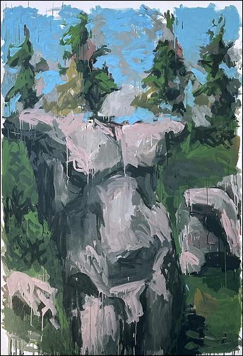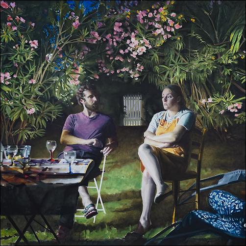 | Daniel Berkovitch se décrit comme un peintre témoin de son temps qui s’adonne à une figuration narrative. Le témoignage qu’il nous livre, c’est celui d’un spectateur impuissant d’un monde en phase de dislocation, voué à un inexorable effondrement, à des changements radicaux inévitables…. Et cependant trop prévisibles… Le caractère apocalyptique – au sens étymologique de ce mot, celui de révélation – de son travail s’appuie sur une figuration colorée, séduisante, faisant appel à des aplats monochromes, à des figures humaines dépourvues de faciès, à des répertoires de formes stéréotypées. Leur mise en scène, dans des situations insolites, joue sur un double registre : celui d’un onirisme réconfortant, voire séduisant, et celui du choc cognitif, de l’effroi, du vertige... Le peintre se pose ainsi en lanceur d’alerte. D’une toile à l’autre, il peut aborder le dérèglement climatique, la surconsommation, les conflits et les guerres, la bétonisation des espaces ruraux, l’extinction de certaines espèces, les mouvements migratoires, le désabusement d’une partie importante de la jeunesse… Tous sujets d’une actualité brûlante, hypothéquant gravement notre avenir, mais ne suscitant pas de réponse claire de nos sociétés… Et l’artiste de déclarer : « Ma peinture explore la fracture entre le monde d’avant et les changements radicaux à venir. […] Je suis un passeur. J’essaie très modestement, par mon propos, de réveiller l’espace d’un instant notre sidération qui ne se nomme pas, et de regarder l’évolution du monde. » |