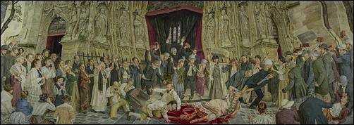 | Professionnel du cinéma d’animation, Ferdinand Boutard est entré en peinture comme on entre en religion. Grand admirateur des peintres classiques, notamment du Caravage, de Velázquez, Vermeer, Egon Schiele et Norman Rockwell, il a conservé de ces modèles anciens la pratique, désormais désuète, de la peinture à l’huile sur panneau de bois. Sa gageure est de remettre un certain classicisme au goût du jour en réconciliant humour, rigueur et perfection technique. On se souvient de ses relectures des classiques actualisés à la mode de notre temps (la Buveuse d’absinthe de Degas consultant son ordinateur portable), de la vision de jeunes femmes faisant un arrêt-pipi, de nuit, en bordure de route, dans le faisceau lumineux des phares de leur voiture, ou de la relecture contemporaine de l’aventure du Petit chaperon rouge de Charles Perrault, transposée dans le contexte d’une banlieue de grande métropole, hantée par l’insécurité. Dans son monument le plus récent, La papesse Jeanne, un panneau en deux parties de plus de trois mètres de largeur, il relit la légende de cette mystificatrice du IXe siècle, arrivée sur le trône pontifical bien que femme et dont l’imposture n’aurait été révélée que quand elle aurait accouché en public lors d’une procession de la Fête-Dieu. La foule l’aurait alors lapidée sur place. Ferdinand Boutard décrit la scène, grouillant de personnages aux attitudes les plus diverses, devant la façade quelque peu anamorphosée de l’église Saint-Merry, près du Centre Pompidou, avec des protagonistes vêtus à la mode de la fin du XIXe siècle. |