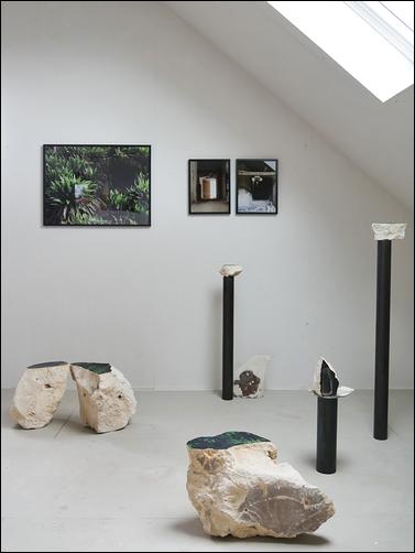 | La démarche de Clara Gallet s’apparente à celle des scientifiques, du type de celle des anthropologues. Elle s’appuie sur des recherches sur le terrain, des observations, des prélèvements, leur examen et leur restitution. Telle une archéologue du contemporain, elle s’intéresse à des environnements délaissés, abandonnés, à d’anciens lieux de production industrielle désaffectés. Elle en considère et analyse les mutations, les dégradations plus ou moins rapides, mais aussi les diverses formes de vie ou d’usage qui renaissent de leurs décombres. Ses installations rendent compte de ses travaux de prospection, confrontant des sculptures et des photographies pour nous offrir selon ses propos, un regard sur les grincements d’un monde en perpétuel mouvement. D’un de ces lieux en suspension, qui ont perdu leur fonction et revivent sous une autre forme, elle déclare : « Durant des siècles, le bassin carrier de l’Oise a fourni des pierres pour construire et rénover des bâtiments parisiens. Je suis allée à la rencontre d’une ancienne carrière souterraine de l’Oise dont l’exploitation a cessé en 2020. La fin de cette activité d’extraction a permis le développement d’une végétation luxuriante aux abords des cavités. On y trouve notamment des fougères scolopendres, plantes qui apprécient l’ombre et les sols calcaires. Elles poussent parfois directement sur les blocs rocheux excavés. Sous terre, les parois rocheuses sont marquées de différentes textures. Ces traces, empreintes d’outils dans la roche témoignent des techniques d’extraction du calcaire. Cet état du site est temporaire : les cavités seront bientôt remplies de gravats provenant de chantiers de la région parisienne. […] J’y ai prélevé des blocs de calcaire, j’ai photographié les cavités souterraines, les textures visibles sur leurs parois et les végétaux qui prospèrent aux entrées des galeries. Assemblés, taillés et retravaillés ces éléments, fragments de roche et photographies, constituent l’installation Extraction. » |